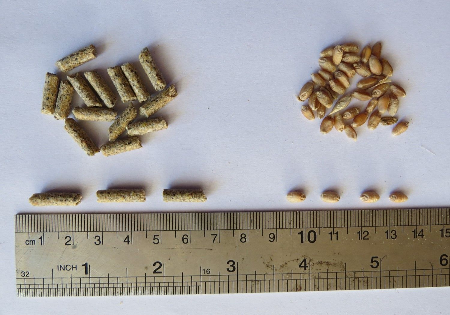 I don't know the exact size of a chicken oesophagus however it was very obvious that the chicken was suffocating and if we had not acted it would have died within minutes. Unfortunately we had to act ourselves as no one else would assist (no one is willing to help you with a rooster you see). The hard laying pellets measure 15mms in length the wheat measures at most 5-6 mms in length (that is a differential of 3 times the size.