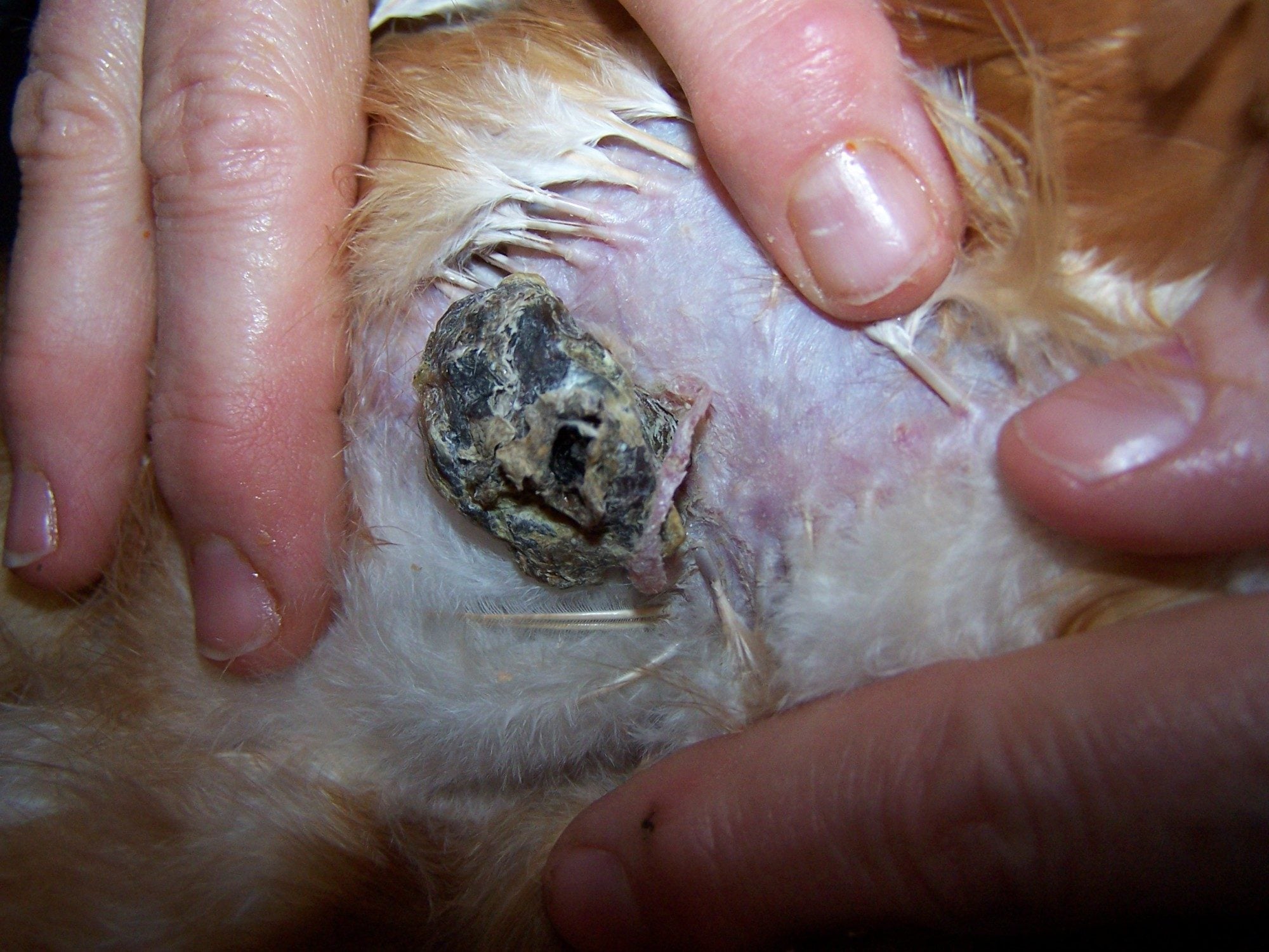 Wow! Really? Its hard to touch and looks like it isn't really a 'part' of the chicken but rather a giant lump of a hard black scab. It is big and thick.... I will try and see how far I get! Thank you - fingers crossed!