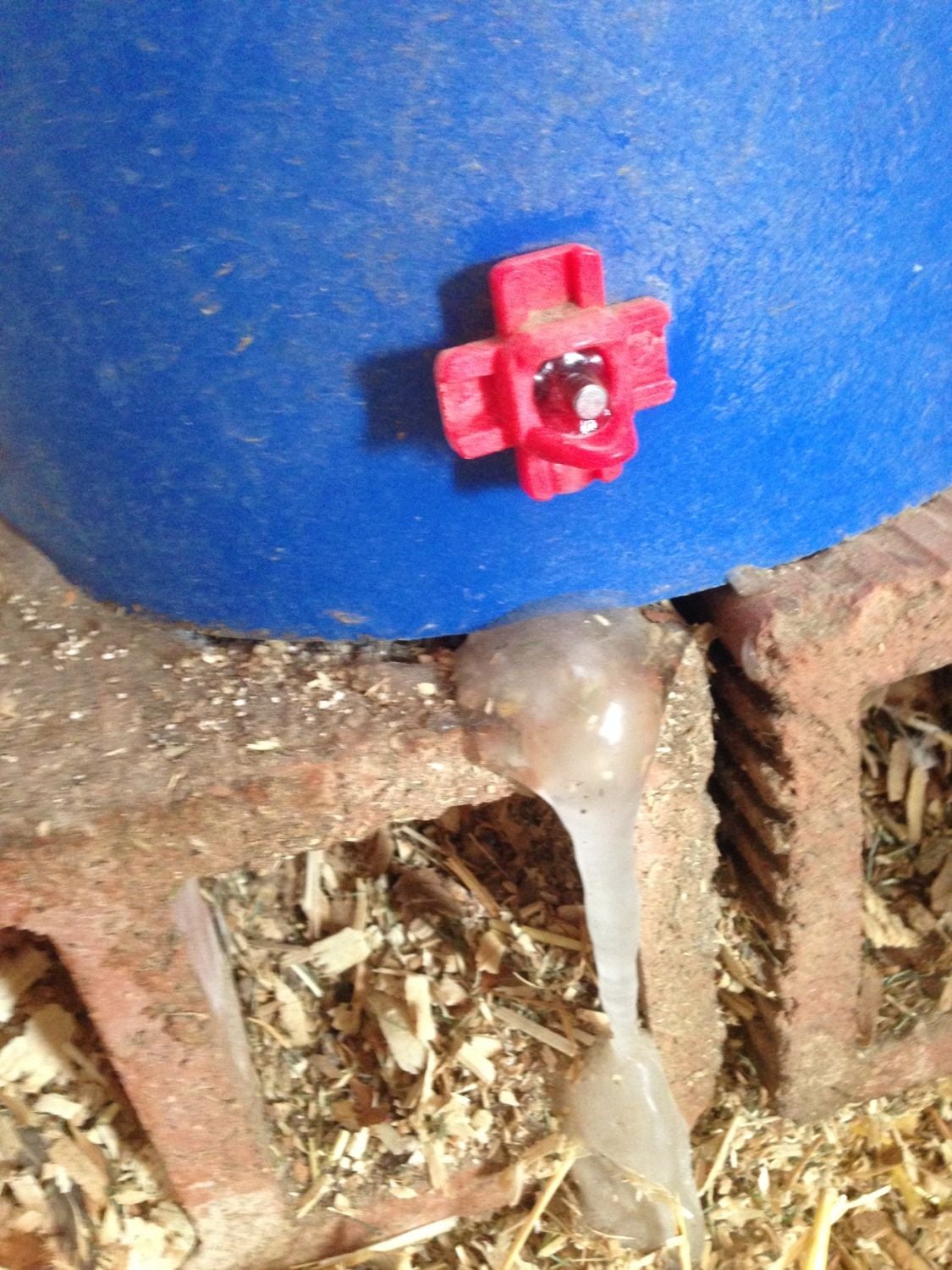One of the icicles that formed from the cup all the way down to the ground. This was after hubby had thawed out the cup and metal spring, and the top part of the brick. This was with a stock tank heater in it.