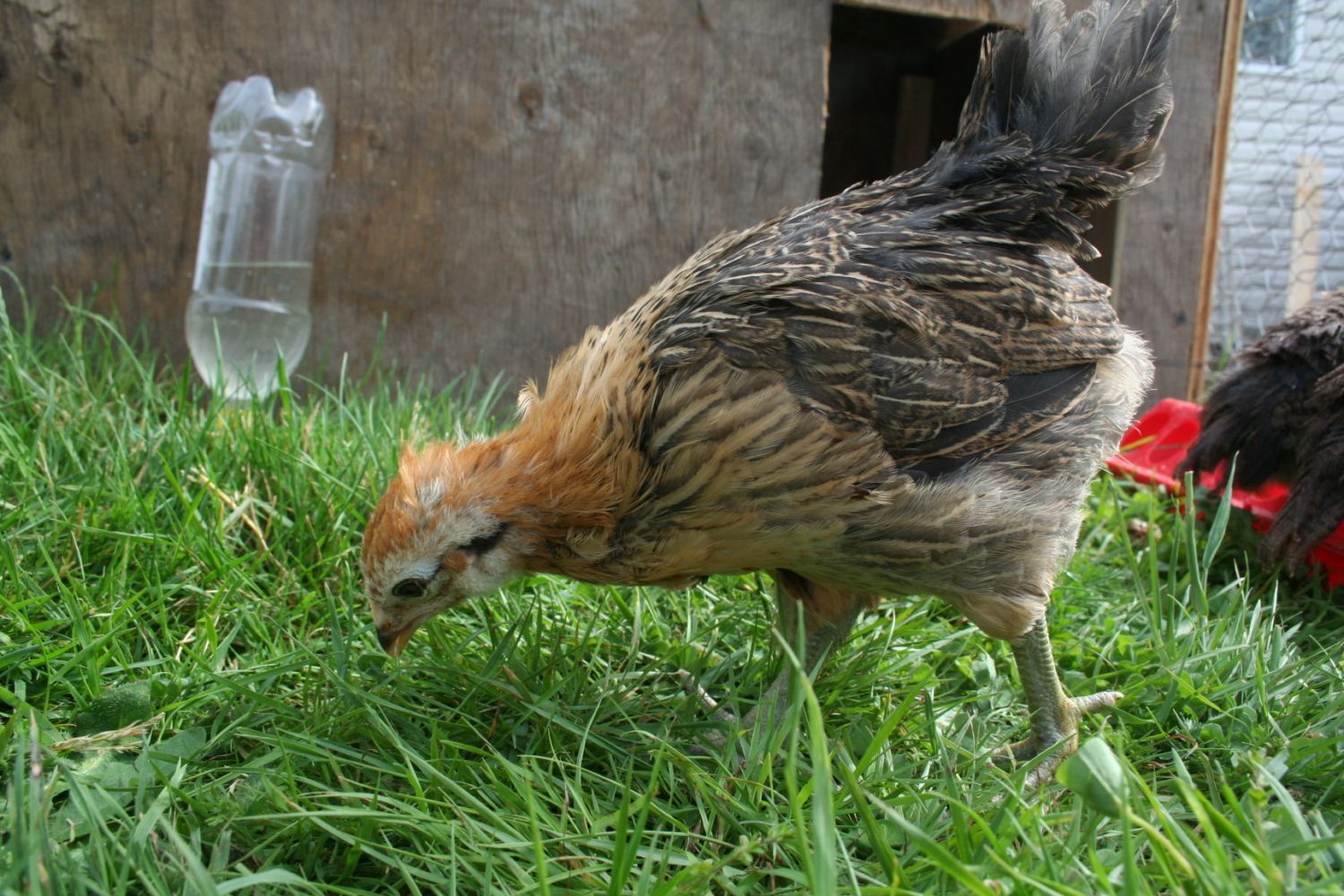 This is Gretta my 5.5 week old EE. About 5 days ago I notice she was having a bad hair day. The feathers on her head were sticking up. So I looked and didn't see anything out of the ordinary. Yesterday I seen that it looked like some of the feather had been pulled out of that same spot. Now today more feathers are missing and she has this brown spot on her head. It's not like an injury though. She is still gaining weight nearly an ounce since yesterday she is eating and drinking normally. Should I just keep an eye on it and see if it get bigger or goes away? If it gets bigger I know I should cull her so she doesn't suffer.