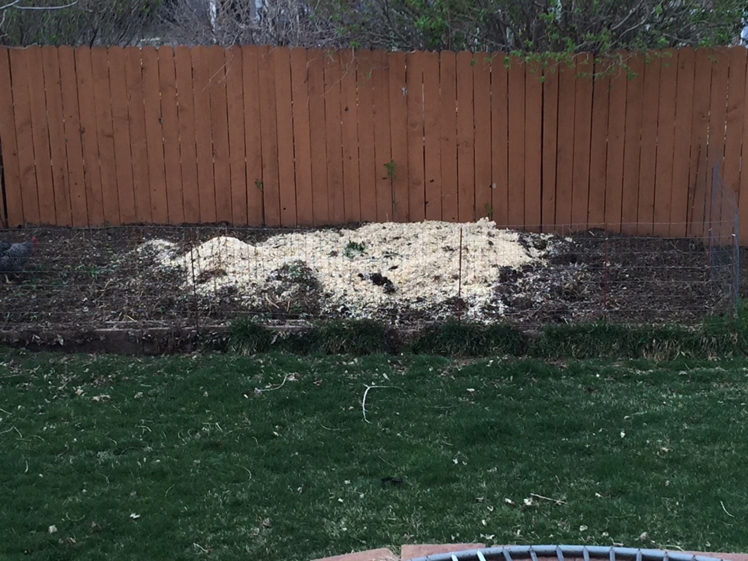 I'm also planning on re-purposing a portable chicken run we got from a friend into a fully enclosed compost bin that we can open up to put materials in and to give the chicks access to. We don't free range (too many predators) and don't have a fixed coop or enclosed run... yet. We do have plans to expand the flock and have a coop and run, and will have yet another compost pile in the run for the chickens to get to.