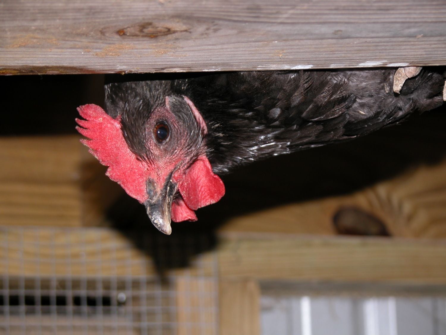Is this just a Rhode Island Red thing? Our new white Leghorns aren't quite as stupid and they're a lot friendlier, though they still haven't figured out that bread is for eating, even when we break it into chunks. They still freak out at anything made of plastic, too.