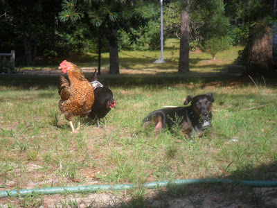 Luna stays with the girls, follows the girls and listens to the birds. When a signal goes up of danger, Luna will jump to her feet and listen as well. I sometimes wonder if the birds know that, and purposely leave extra food and scraps for her to 'clean up' at treat time.
