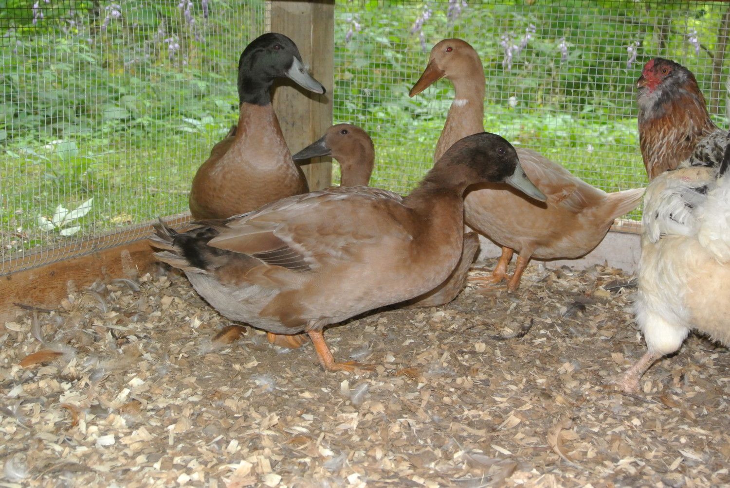 My 2 Khaki Campbell drakes in the front - 2 mixed breed hens in the back