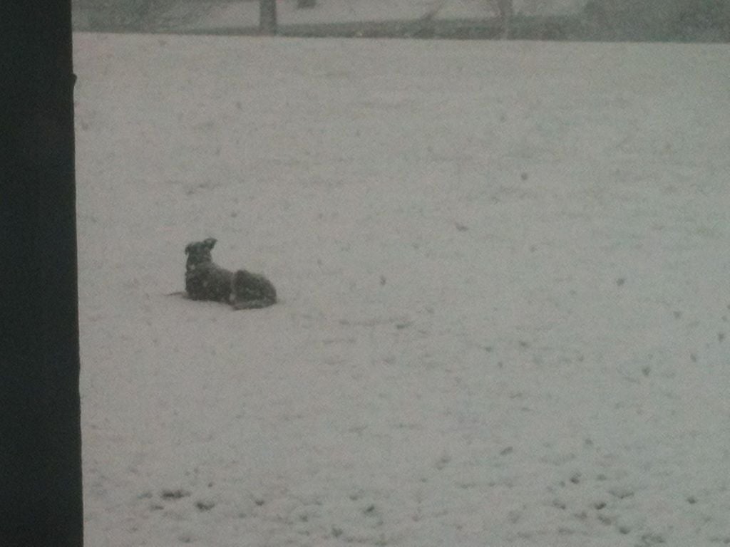 My dog laying out in the snow! She is a Husky/Malamute mix!