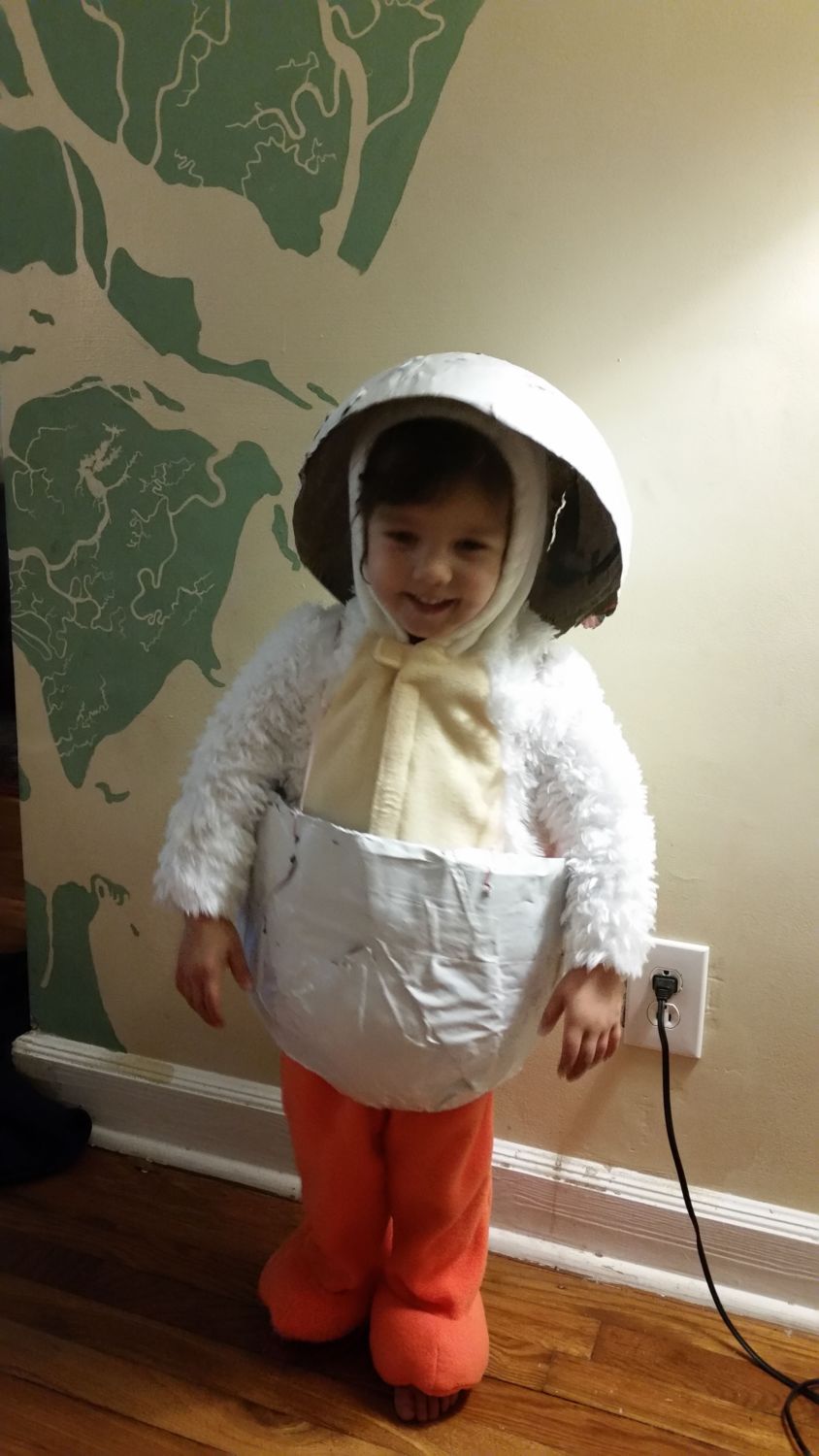 Here is my youngest in her little " chick hatching out of an egg " costume!