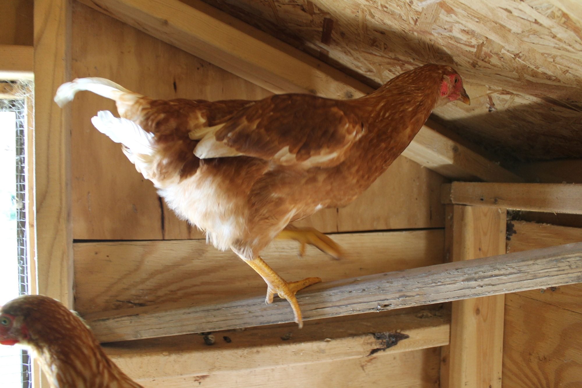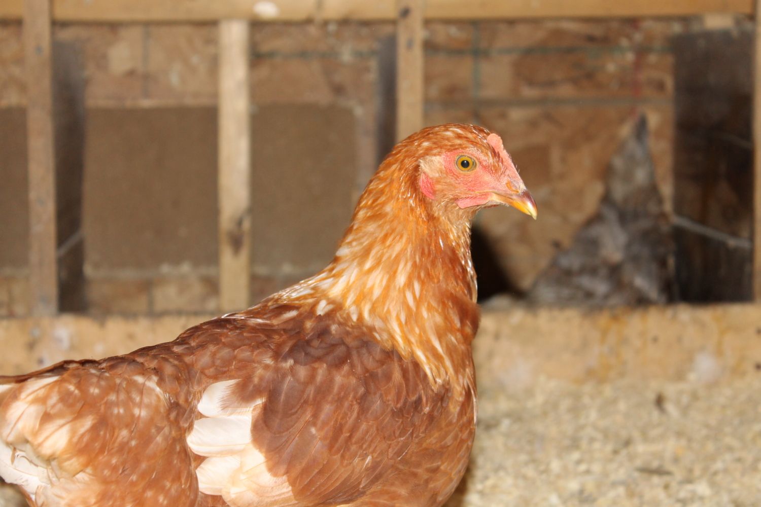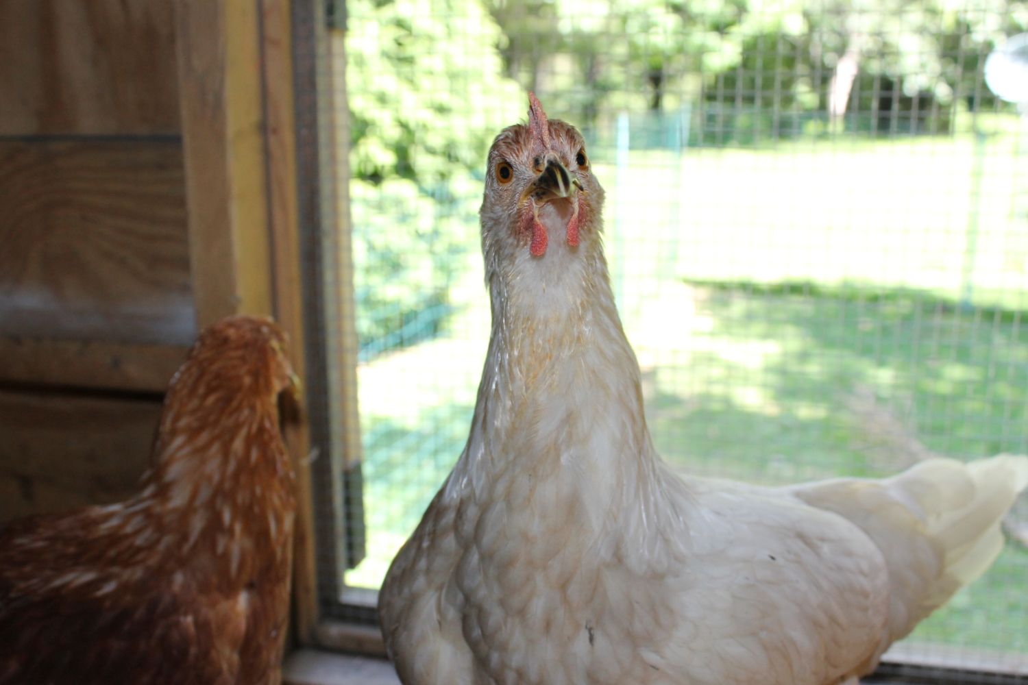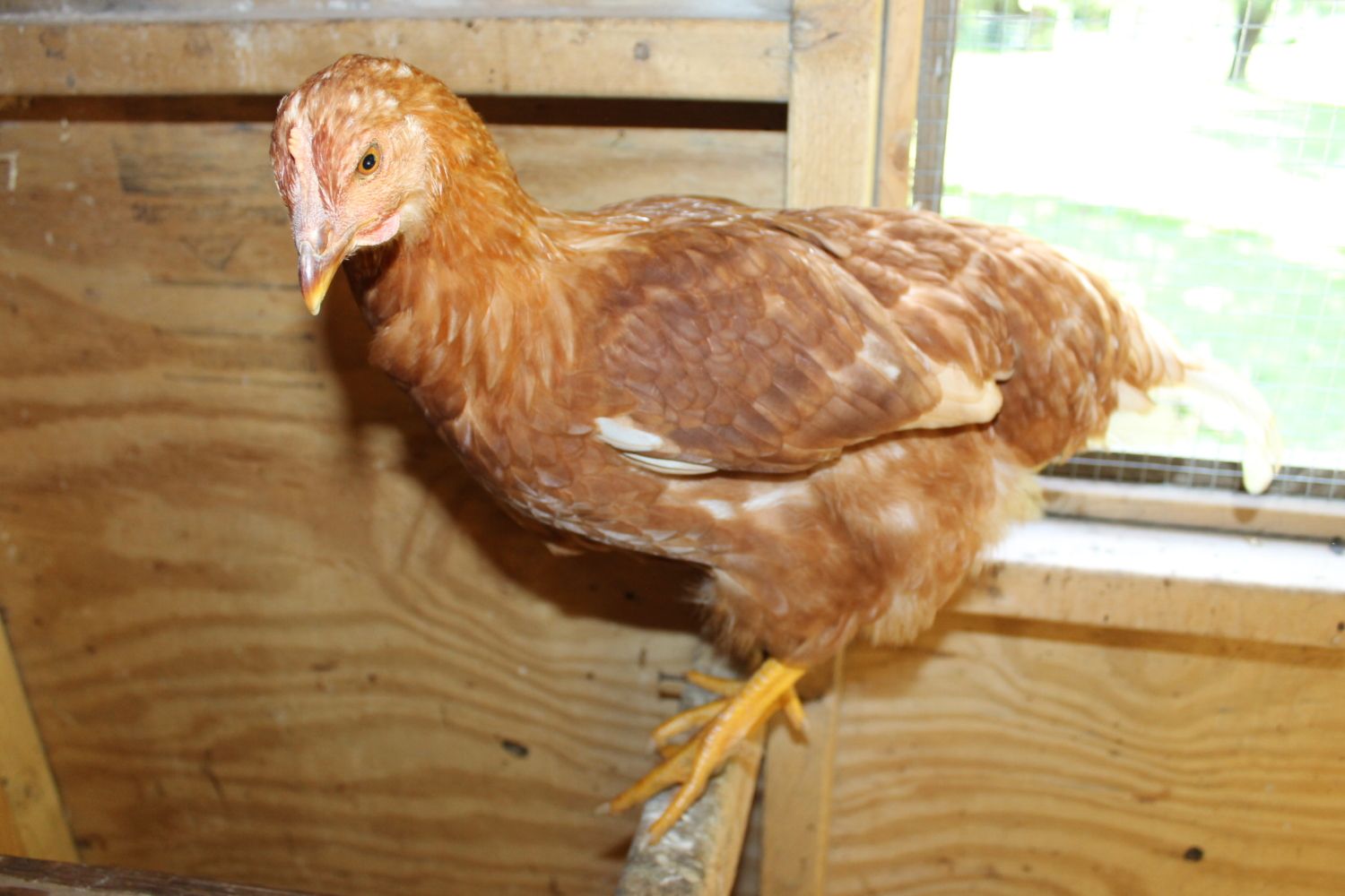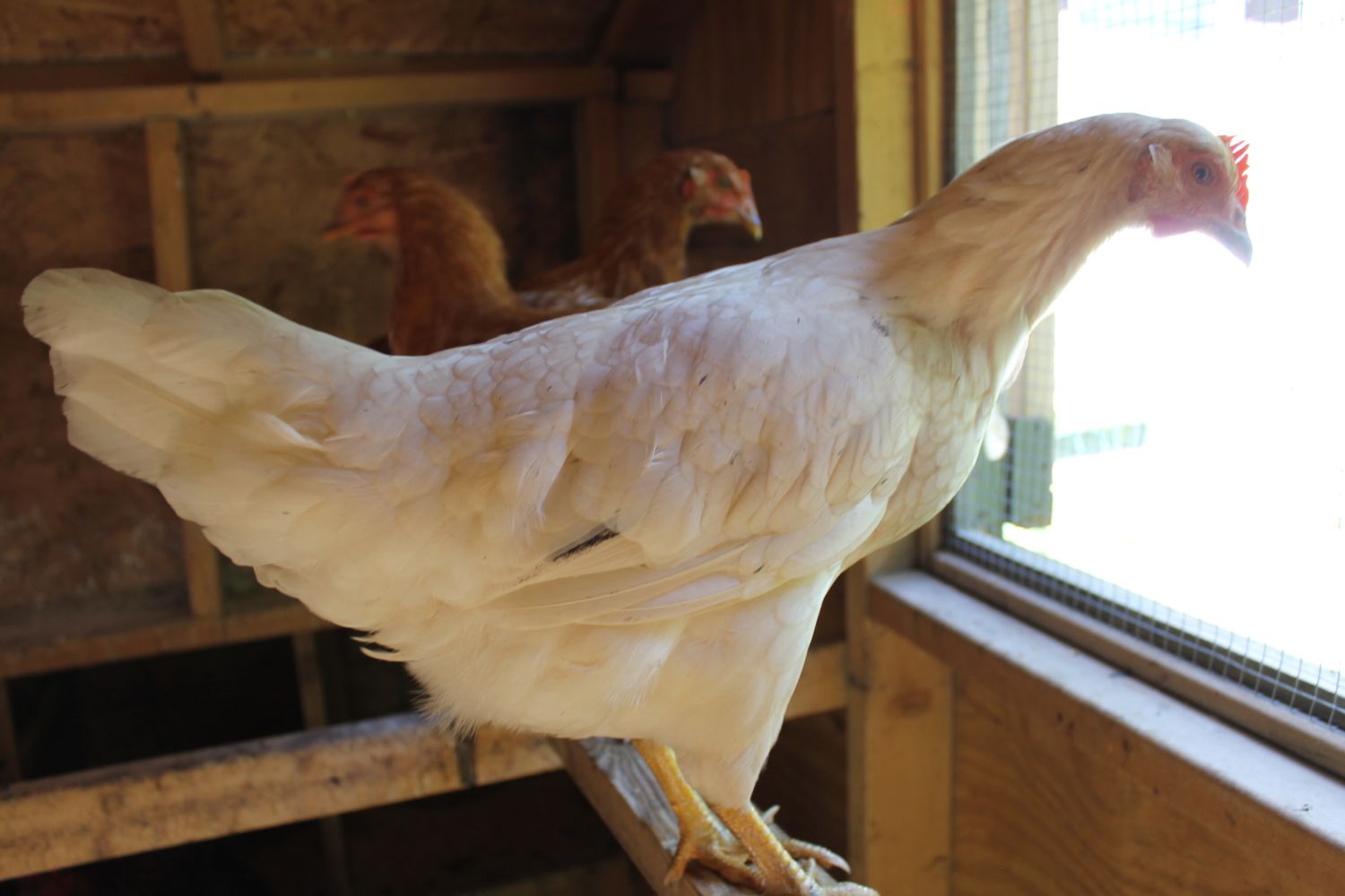 So, I had three wayward chickens show up at 4 am a few nights ago. I have no idea on age, but I am guessing they are between 12-14 weeks as I currently have 10 week old pullets who are a bit smaller and they are a couple inches shorter than my 1 yr old hens. I am thinking that there are two red sex links and maybe a white leghorn? The white is a little smutty. I was thinking that they were pullets, but the reds have some long tail feathers sticking off. If they were cockerels though, I thought that they would have much more white if they really are red sex links. They are very sweet and quiet. I am torn on everything: age, sex, breed. Any help? Thanks!!