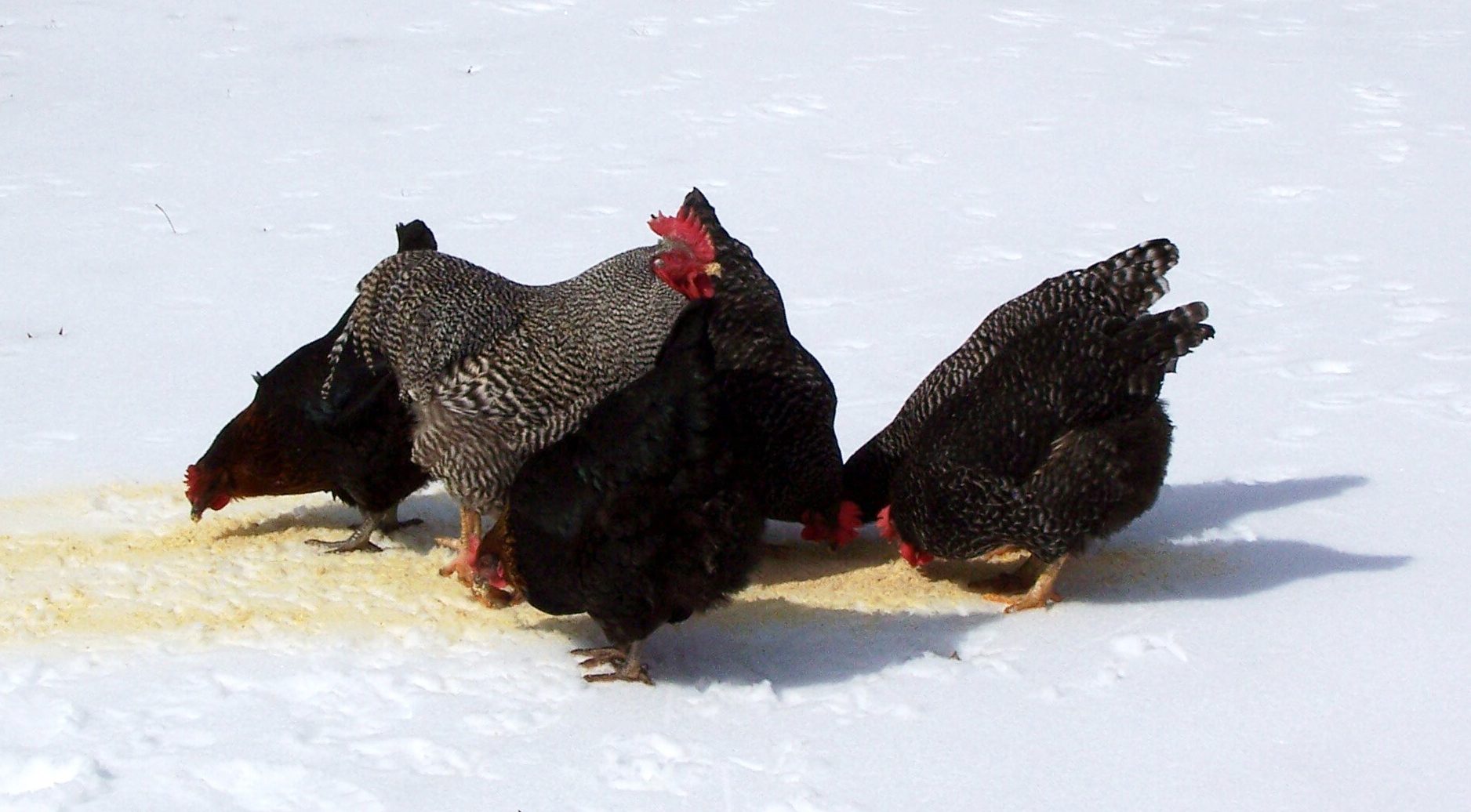I'm glad I found this thread, as I was concerned if they were being spoiled city birds, but it seems from this thread that mine are normal. I feel so bad. My chickens, feral cats and my dog are miserable during this long winter. I am too - I hate it. Last weekend it warmed up (to 51 degrees!!) and the chooks were out and about alllll day Saturday. They barely made it to the coop for night time. LOL.