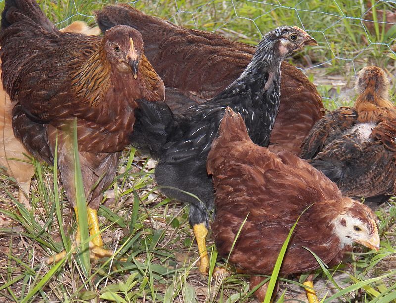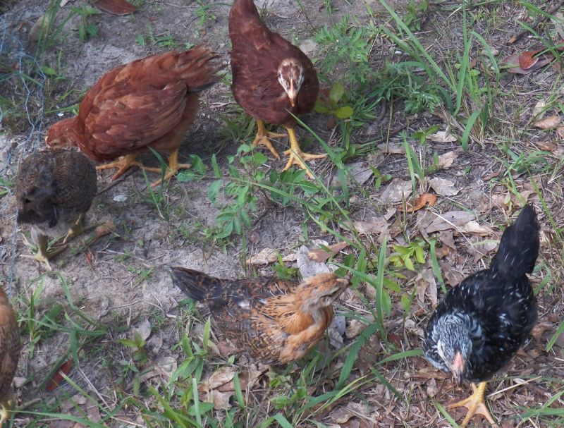 The flock is finally off the back porch and in the run. I know they were tired of the box. I'd let them out for a couple of hours and they'd spend the night in the box. I have a three sided coop with a couple of roosting perches. I really don't have to worry about nesting boxes yet (they're only 3 months old). I'll be working on the nesting boxes next week. Here's a few pics.