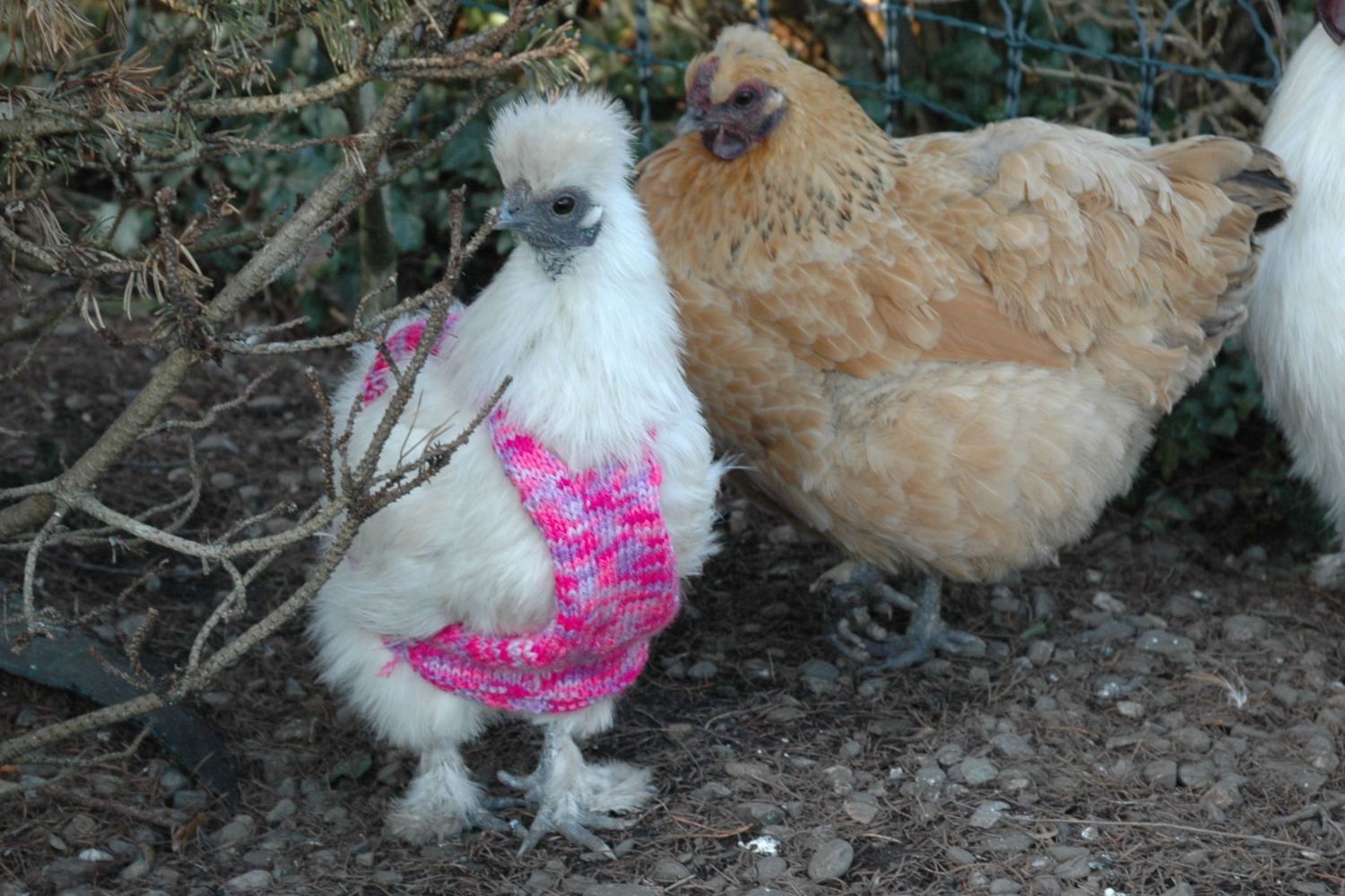 Tried knitted jackets on a couple of mine (these are sopposed to be for rescued battery hens) as Amy, the one in my avatar had been feeling the cold last winter. She was not impressed when I tried to put it on and soon managed to remove it herself. So much for trying to help her!