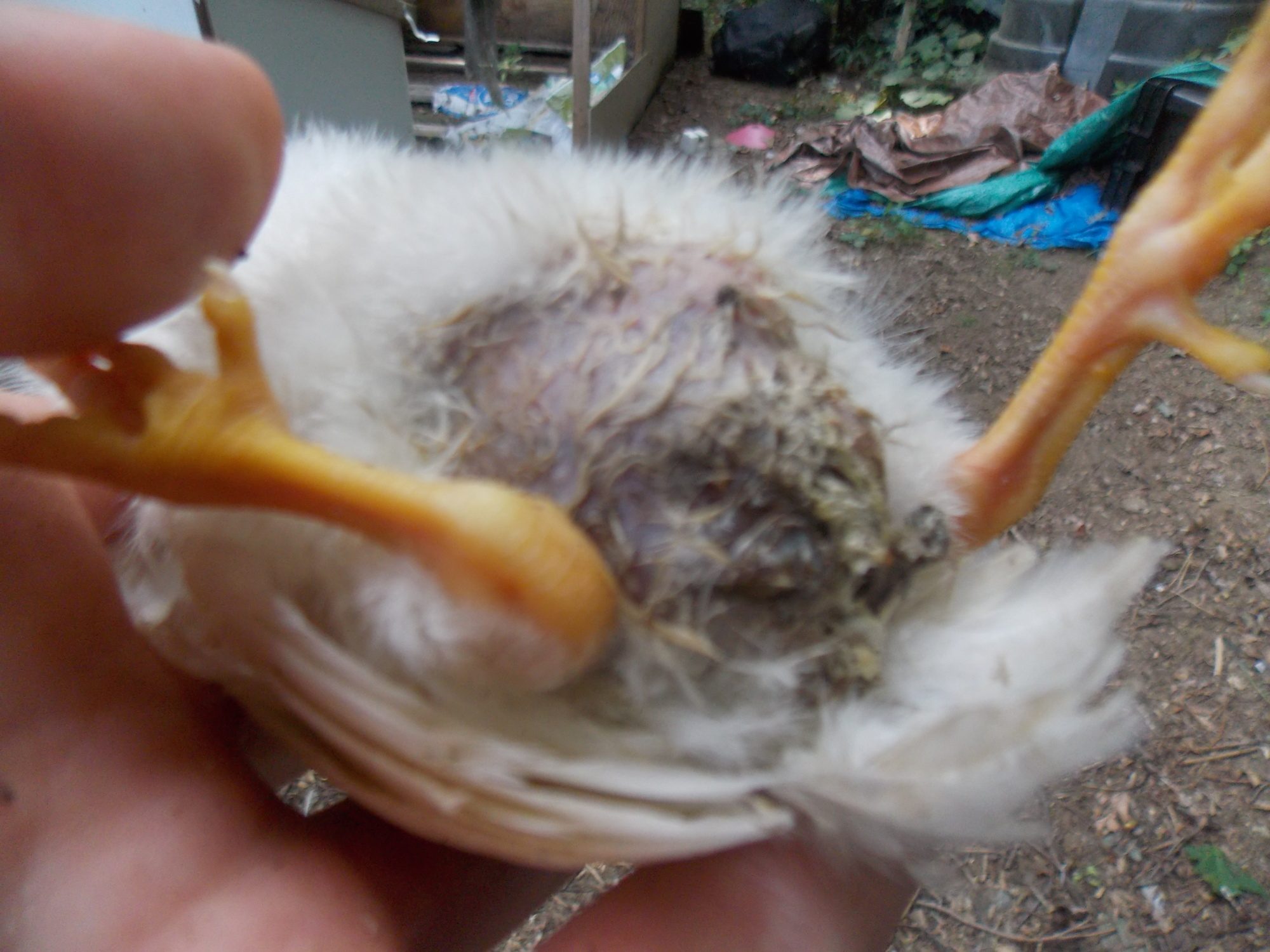 I have a broody he who hatched out 13 chicks almost 3 weeks ago. The other day I noticed something was wrong with one, but didn't think anything of it because I thought it would be okay. Today I found the chick dead and noticed that a couple others have the same problem. Does anyone know what it could be?