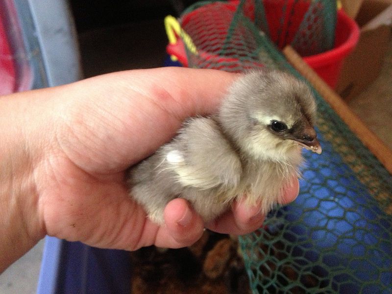 The four of them are so tiny! This is an olive egger who wouldn't hold still for her