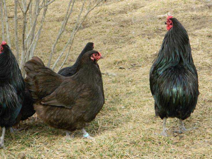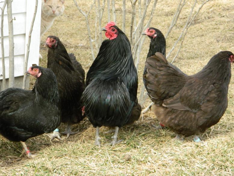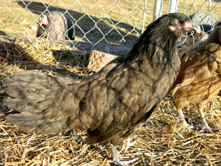 Here are a couple of my chocolate pullets (recessive/sex linked Araucana project) a warm brown chocolate from my Chocolate Orp/Ameraucana hens bred back to their sons (black, split for chocolate that are by my black Araucana cock)