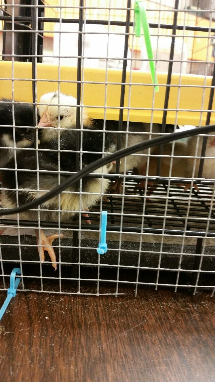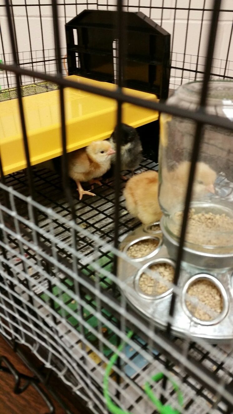 It was cheaper with the grant to buy a large rabbit cage and modify it a bit to work for this set up. A coop was going to cost more than the grant was for.