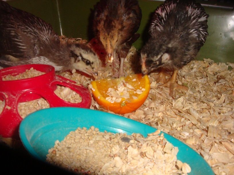 Here she is with her buddies enjoying an orange sprinkled with oatmeal.