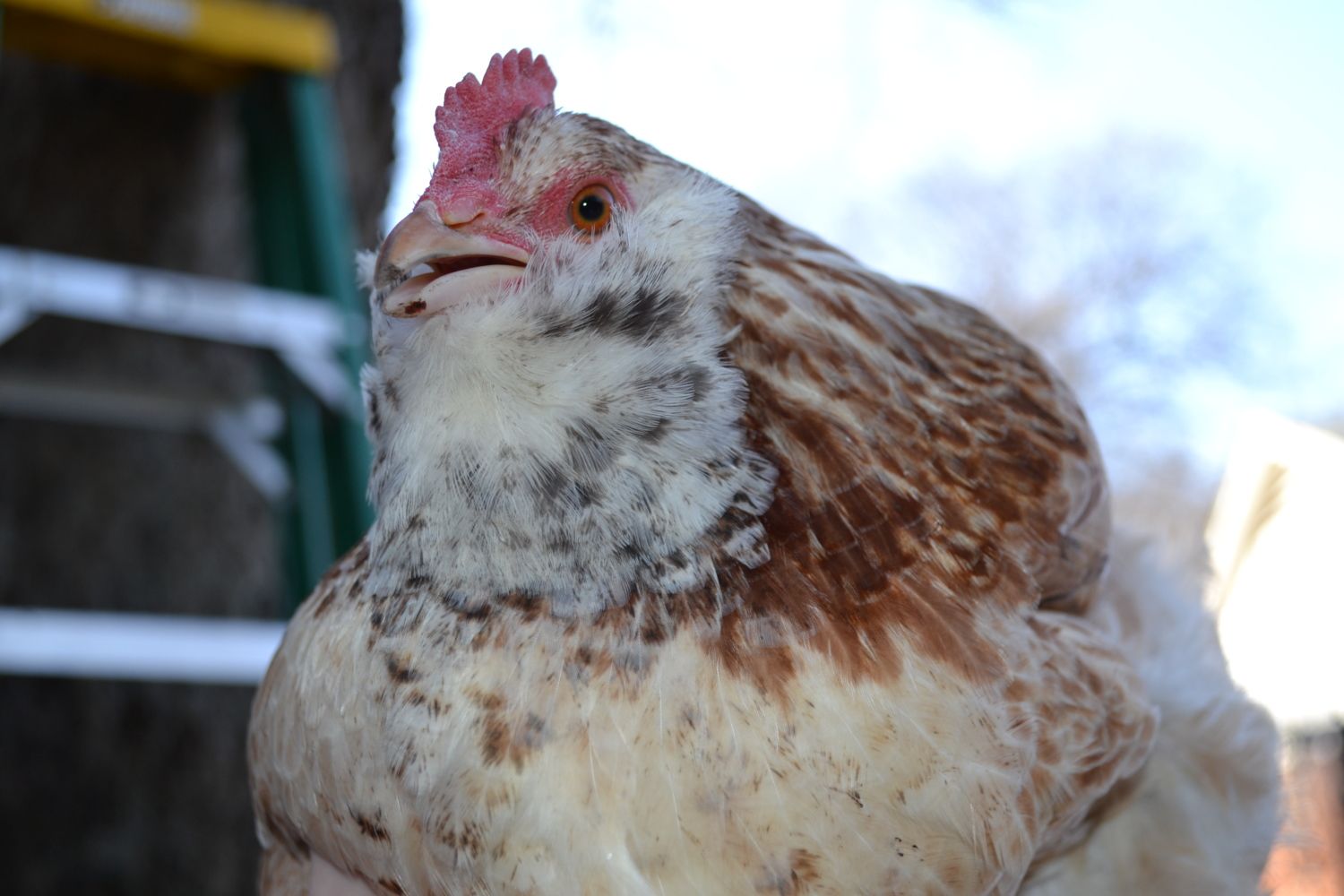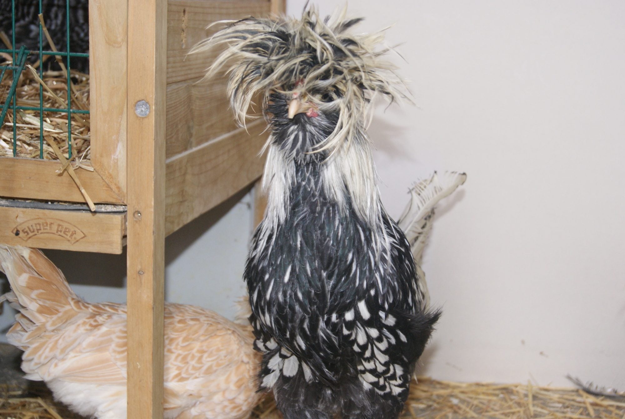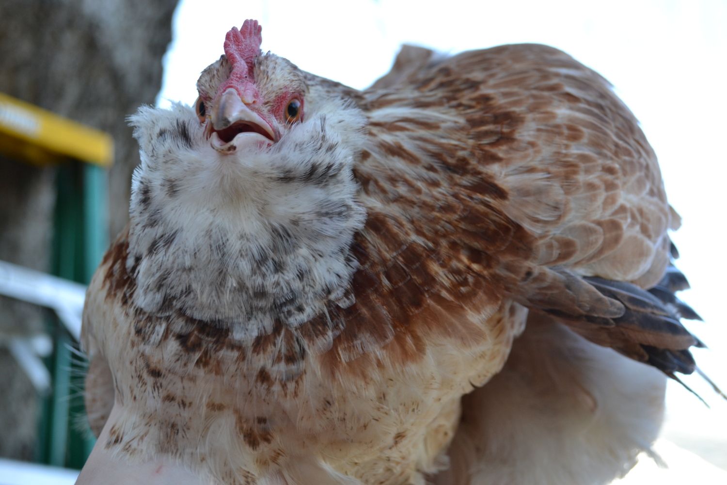 This is my Salmon Faverolle pullet who is about 9 1/2 months old. Her (full) name is Sammy Ella, we call her Sammy =)