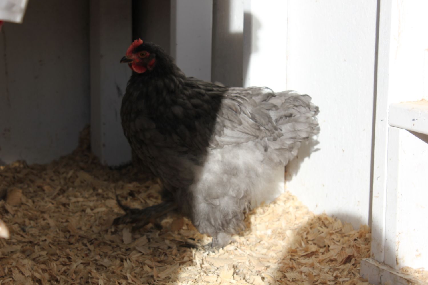 So, if it's a roo, that means one of the other hens was sneaking in and out of the silkie's caged area to lay an egg, and the cochin was going in as well, and just happened to be the one we saw in there. The cochin is very attached to my little silkie hen.