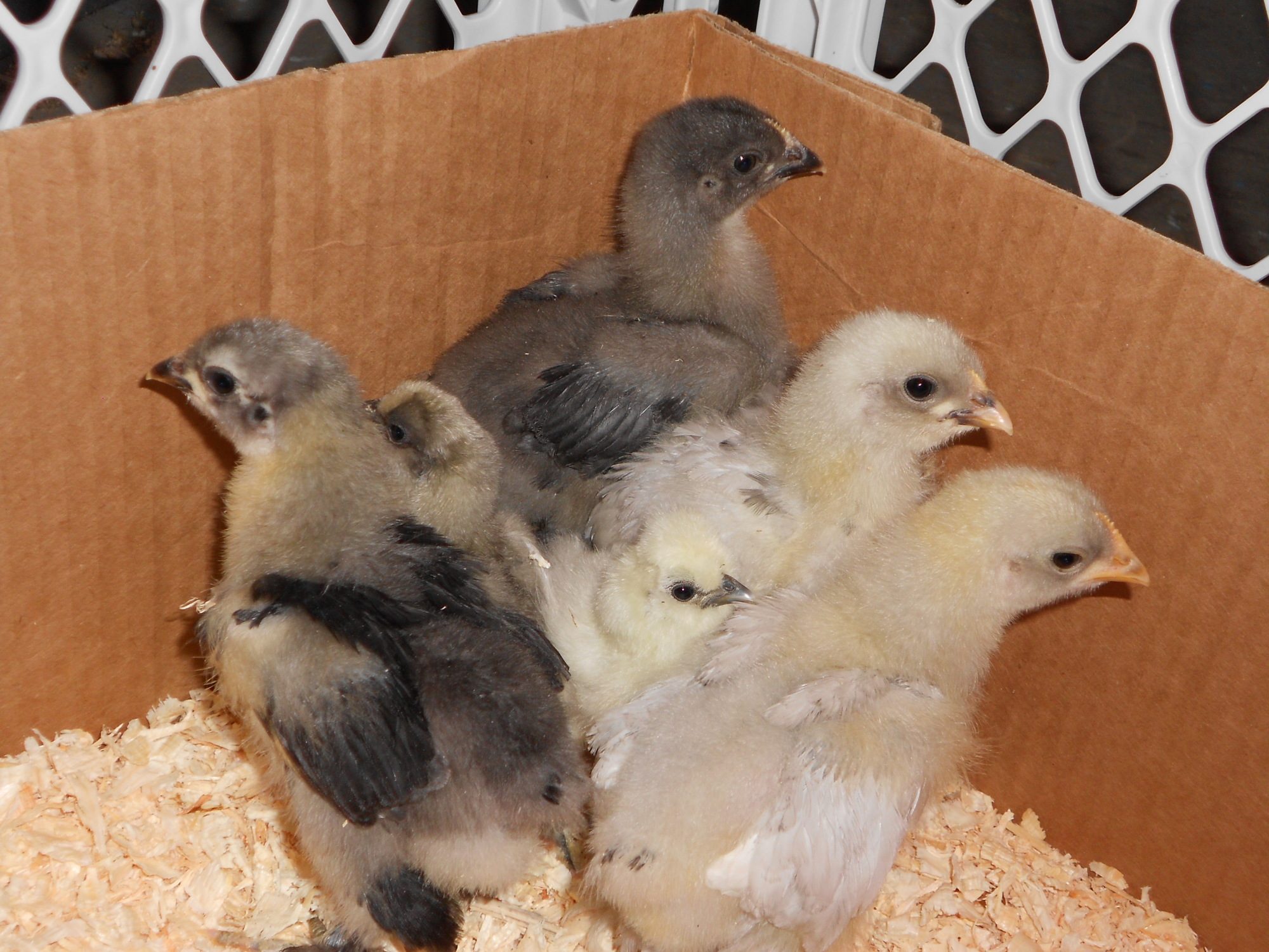 no guarantees, but i think the black at the far back and the self blue(?) at the front right are cockerels. the other 2 kinda hard to tell. you'll know better in a few weeks i'm sure. 8)