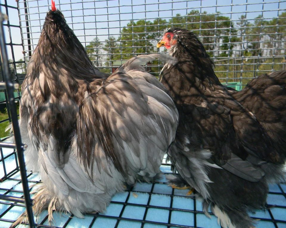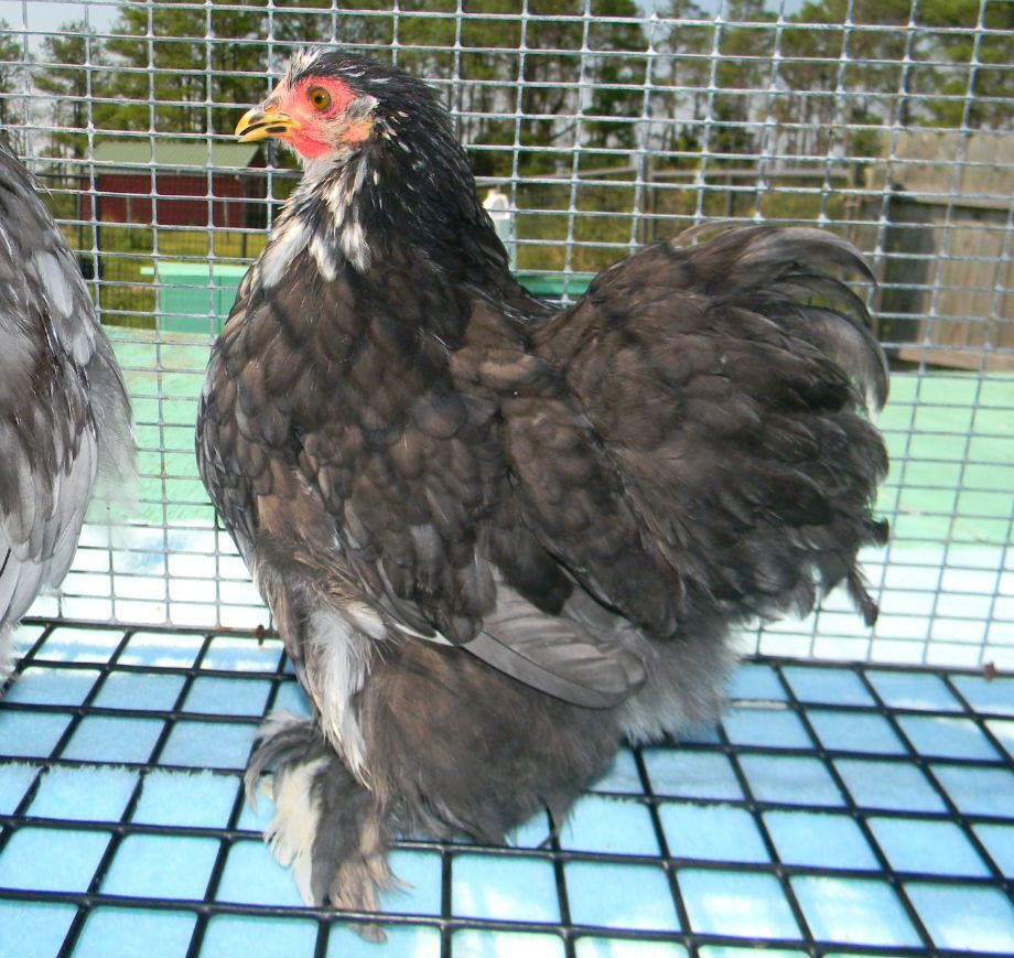 He is the best one as far as eye color. (only one that comes close to reddish bay) He's got quite the comb eh? I really like the shape of some of my other cockerels much better. :/ I hatched 2 white chicks from a white pair I got recently which I thought were pretty good. However I don't think they are that good show wise. One of the babies is developing black type lacing on the wings. And I have now noticed that the legs are short on the babies. They would be wonderful legs for Japanese chabos. They are a very sweet pair(personality wise) so I am going to have to keep them for pets.