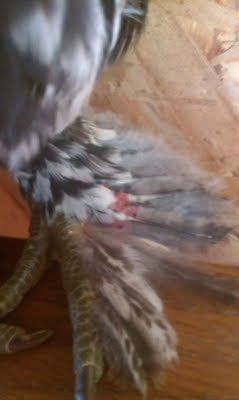 This is correct, it is quite normal on roosters.I am no expert so I can only tell you what my experience has been. I noticed a redness on my roosters legs last year that went from the feet (as you pioctured) up the back of the legs. I posted on Emergencies and people told me it was just hormones. And I never noticed any other problems with it. Hope this helps.![]()