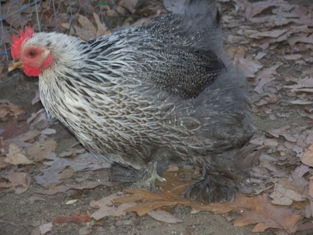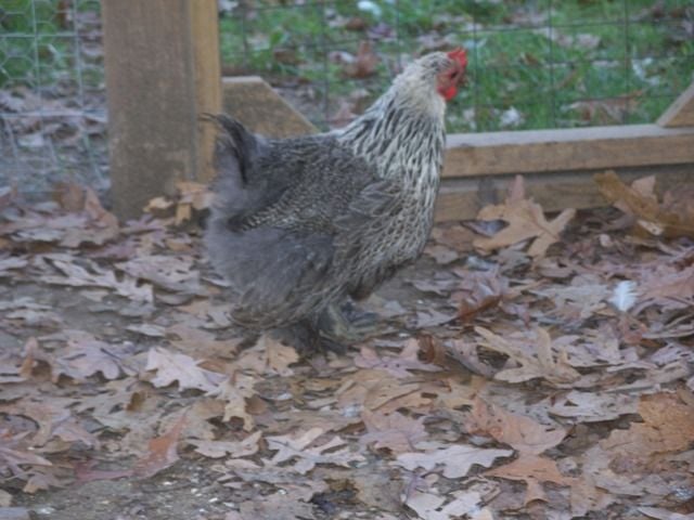 Here are my Silver penciled. I had seven cockerals and 2 pullets. I kept waiting for them to get a little older before I decided which cockerel to keep, needless to say they were all pretty plucked! I hope I chose the right boy to keep. He is finally starting to grow some of his tail back. He is something to work with I hope. This little girl is also plucked pretty bad but the other one is worse! I will have their seperate pens ready soon or by spring anyway.