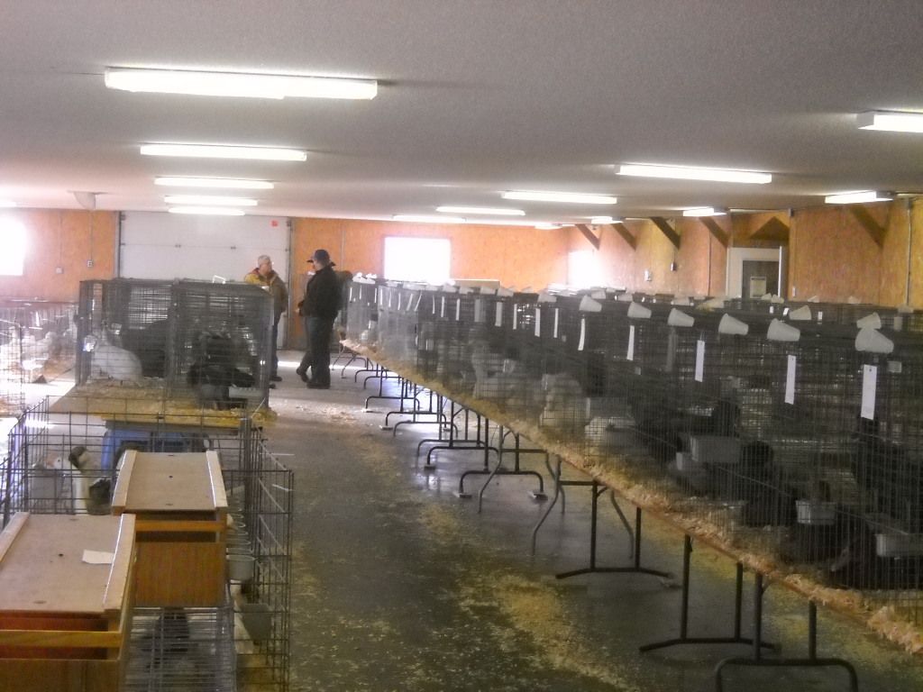 The Eastern Iowa Poultry show is being held this weekend. I took a few pictures of our show rooms and two of a friends Bantam Black Pullets. Any question of what type a show bird really is can be answered by looking at those pullets. I have no results except for the Jr show at Black Cock was reserve featherleg behind a White Silkie.
