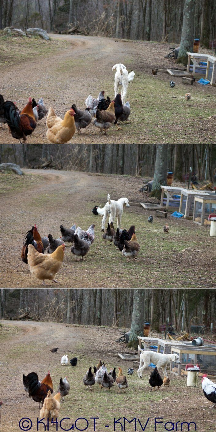 just love watching them run across the yard following whoever's more likely to have food, tho i wonder about this pic (mixed group, not just cochins)... did they think sunny had food?