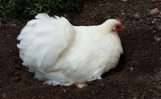 one of my white hens having a dustbath