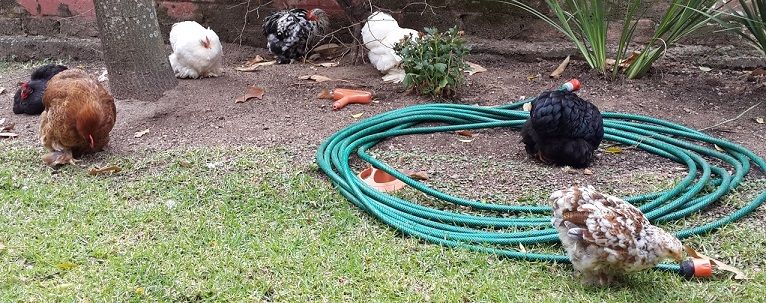 . Excuse the pic, she was rushing past as she had lost her chicks for a moment. I do like her shape though. white hen having a drink, she has just come out of her first hard moult after raising her first flock my partridge pullet, lost the second tip on her comb from a fight, but she is the base of my improving partridge project. group pic. And lastly the strange little mottled partridge pullet, i was really not expecting this girl, as i only had two partridge eggs under a broody. I need to get my partridge a bit darker and better typed, so i had no intention of hatching partridge at this stage, but two partridge eggs were "snuck" under a broody and this was one of hatches. She has good feet and beak though, and is staying. Her she is doing her best giraffe impression.
