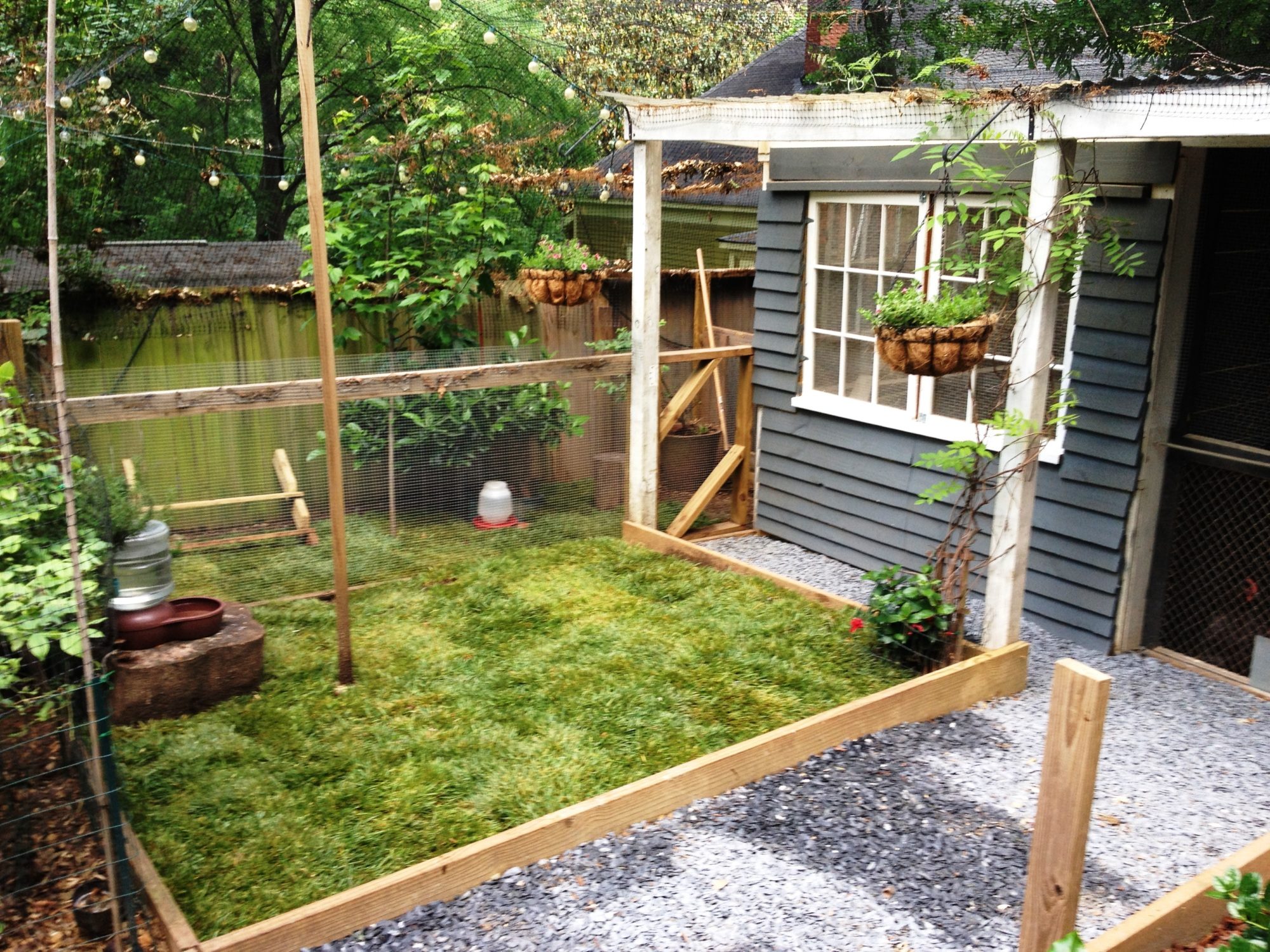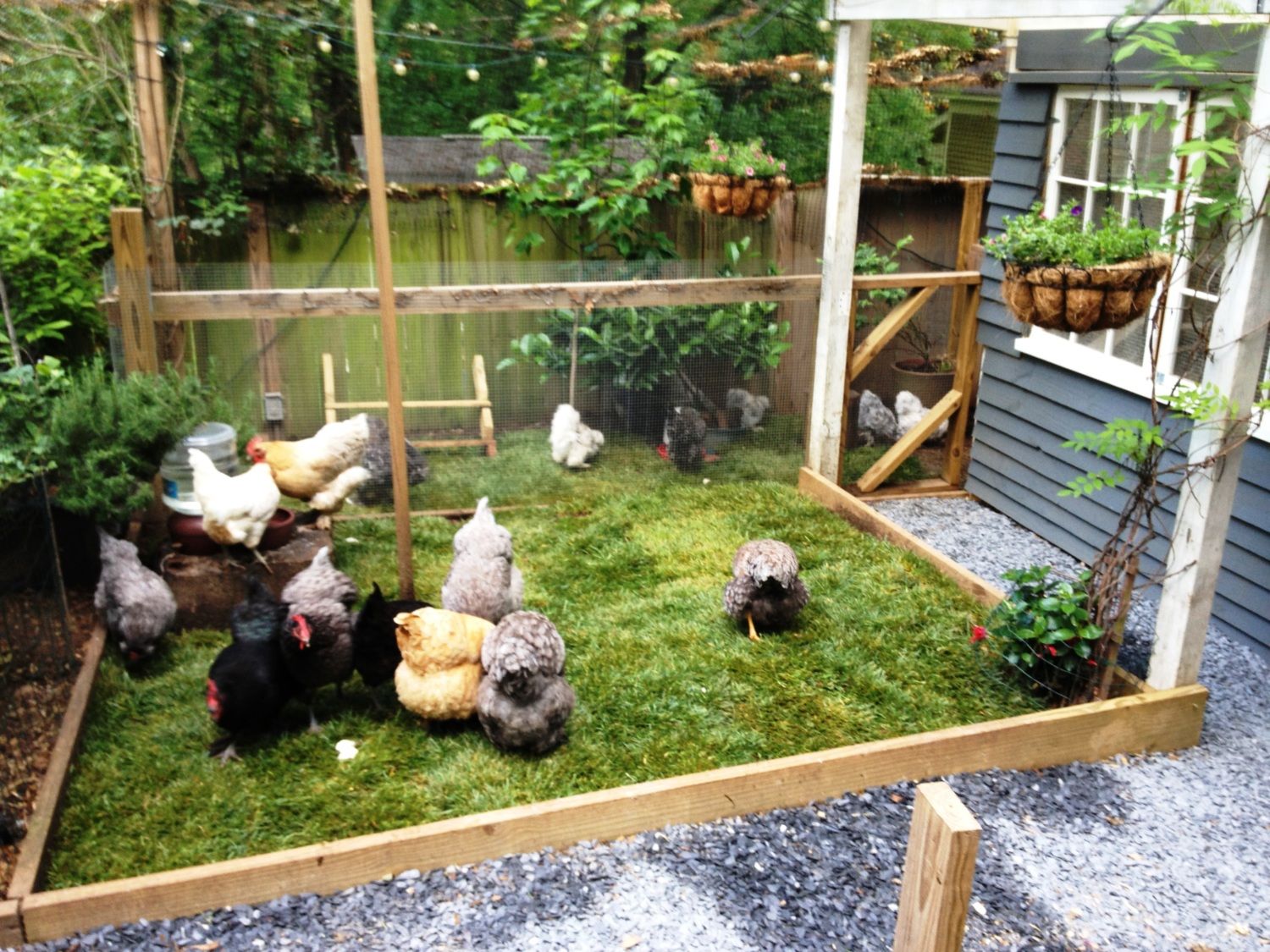 My god! That is so beautiful! I have a new goal. Lol thank you so much for posting this. Do you think standard cochins will kill the sod quickly? I know bantams are muuuch smaller.Hi there...I am new to bantam cochins and have 2 blue mottled (10 BM eggs in the bator today) and 3 spalsh...well our city had a tour of homes and gardens and my garden and coop were on the tour...I spruced up the coop and I even decided to lay some sod in the chicken yards to see how it went...and to my surprise it has been a great success...the chickens love it and it looks great...early days, but so far they have been quite gentle with the new grass...now if only my bantam cochins would stop being broody...and all at the same time!!!!![]()