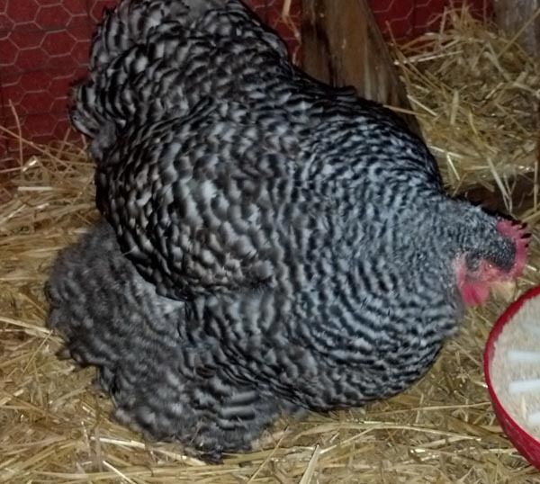 So after a couple of false starts with purchasing some Bantam Cochins that weren't good type, I've finally got the foundation for my Cochin (LF) flock. I live very close to Tom Roebuck so I contacted him to see if he had a barred rooster and a couple of buff hens and a barred hen available. Turns out he did and I came home with them. Pics are poor (rainy, overcast day here and they were a bit skeptical of me and their new digs), but here they are. These will be for both a Buff Barred Project and Barred Cochins.
