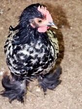 I believe paint (only found in silkies that I know of) is an offshoot of the splash mutation where they just have larger dark splotches instead of the 'splashes' that's normal.I know these are not full cochin but their 50%. I'm more interested in the color,I believe they are paint.the mom was a bantam golden sexlink and dad brown red cochin. Here are some pics sorry not good pics took them with my phone.