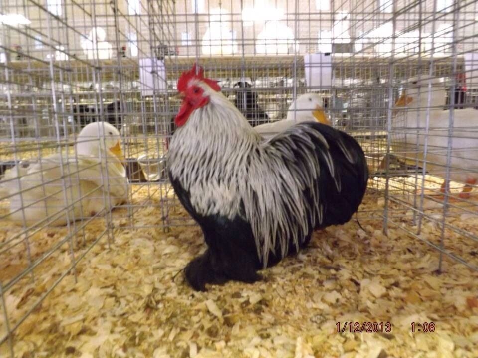 He is a full blooded Cochin bantam from ideal. He is only 5 1/2 months old. He still has a little chirp to him. He has a lot of growing to do. I'm getting this boy's son. Mrs. Jacki said he is a whole lot better looking than his dad. LOL!