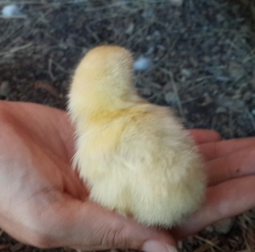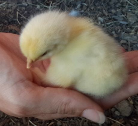This chick came from a partridge pair, it is pure yellow. There are no markings, no stripes and no indication that it is from the pair at all. It almost looks like a broiler chick!