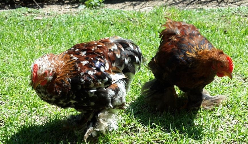 Starting to look like the end product (on the left next to a normal partridge cockerel)