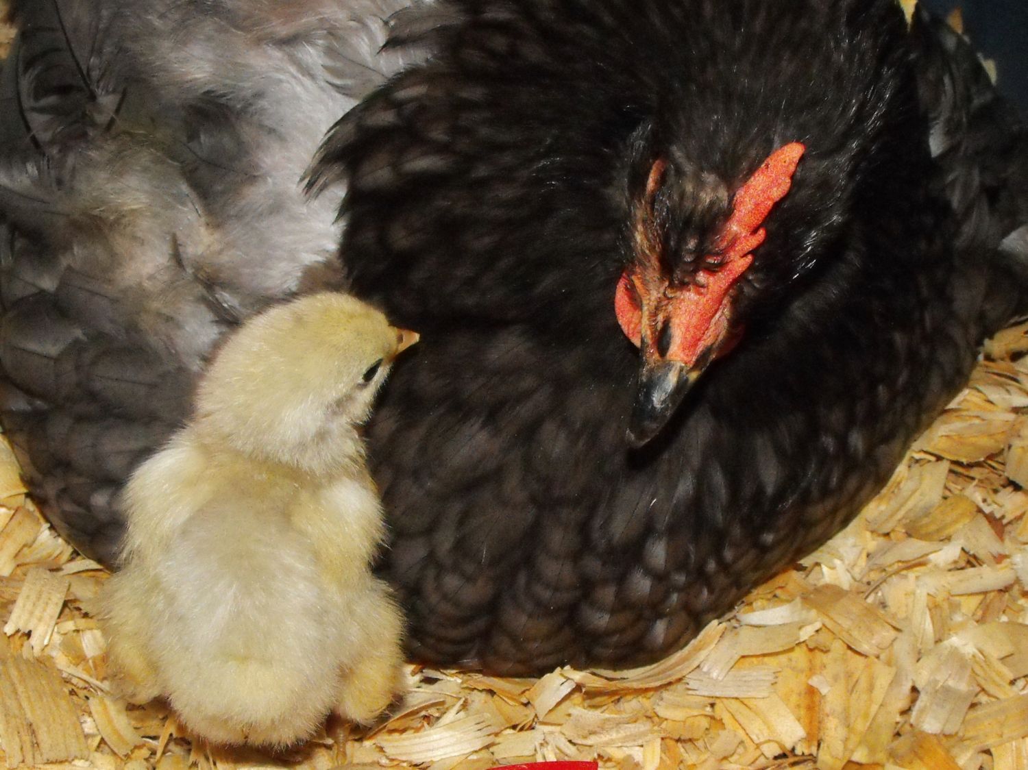 Dotty is an adoptive to 9 chicks, 5 little ones and 4 bigger ones (she has 4 littlies poking out with 1 biggie) there were 10 eggs altogether, the other egg was another littlie but when she left it and I checked it wasn't fertile so I got 9 from 9, all were given to me for free