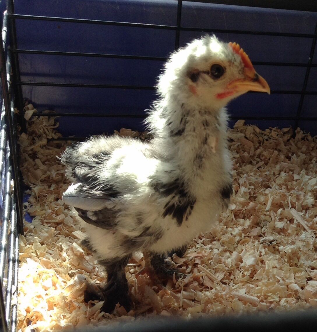 Here are pics of the new chick and the cute family out and about. I am really baffled by the new chicks color. I am assuming it is only half cochin but my hens are 2 white rocks, a lavender Orpington, and Jewel. It is very pretty just surprised with the color. Blu is being such a good rooster keeping the rest of the flock away from the chicks and helping Jewel feed them. He is very gentle and treats them like he knows they are his.