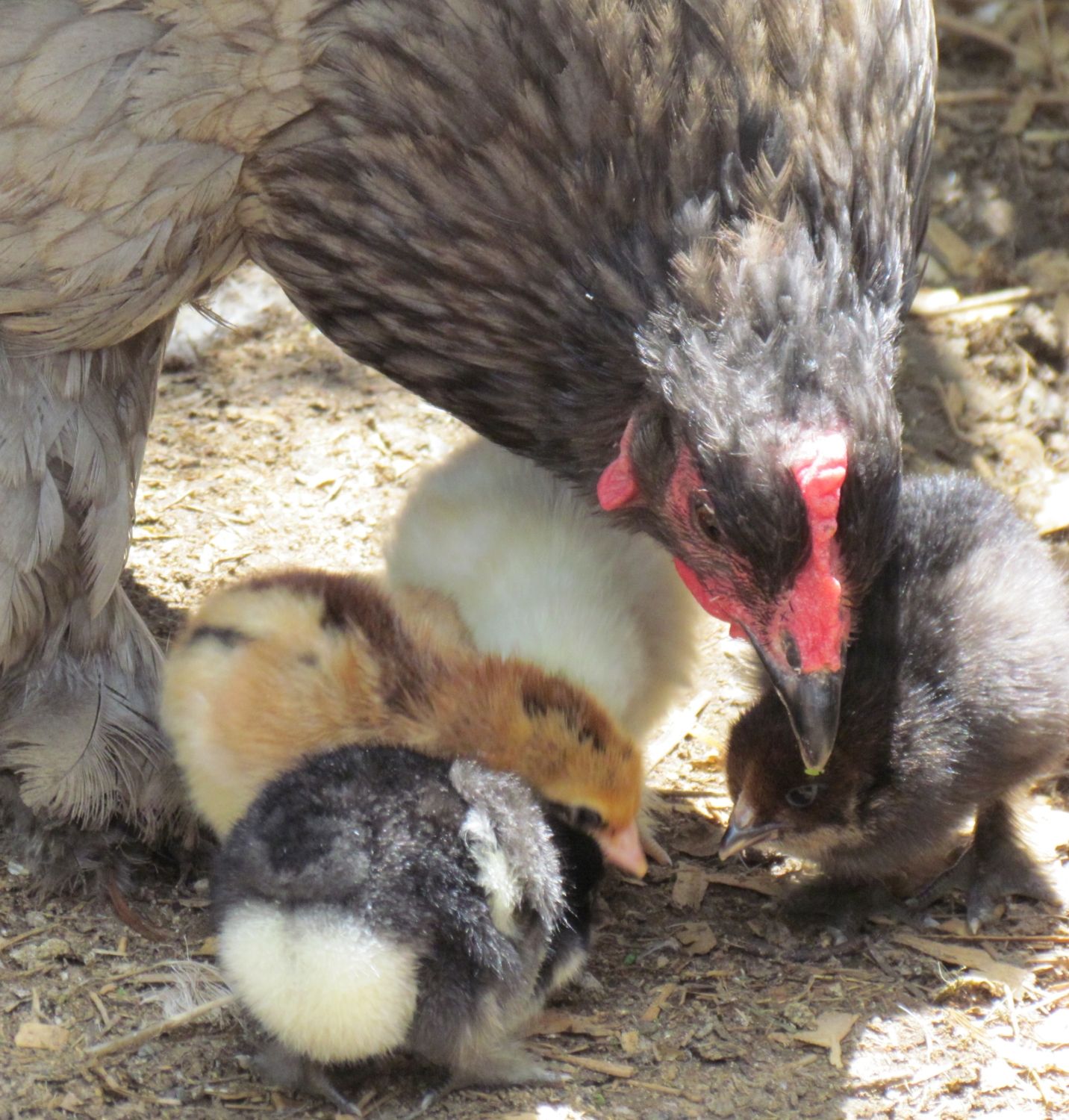 kabhyper1 you do not have to compete with my chicken pics your pics are just as great and your chick just as cute as mine!!! I think if we photo shopped them and added chicks to either pic you would never know they did not belong together. Look at how sweetly Cinder looks at Lavender, I just love it!!! I really like your gold laced bantam pullet too, she is beautiful. BTW... Jewel was so happy to dust bathe, she knocked the chicks over several times. My 10 year old daughter was so afraid for the chicks but I told her they would be fine Jewel would not hurt them. Thank goodness I was right, they learned real quickly what a dust bath was and to keep their distance. It has been neat having our chicks share a hatch day, I look forward to seeing Cinder grow and sharing pics.