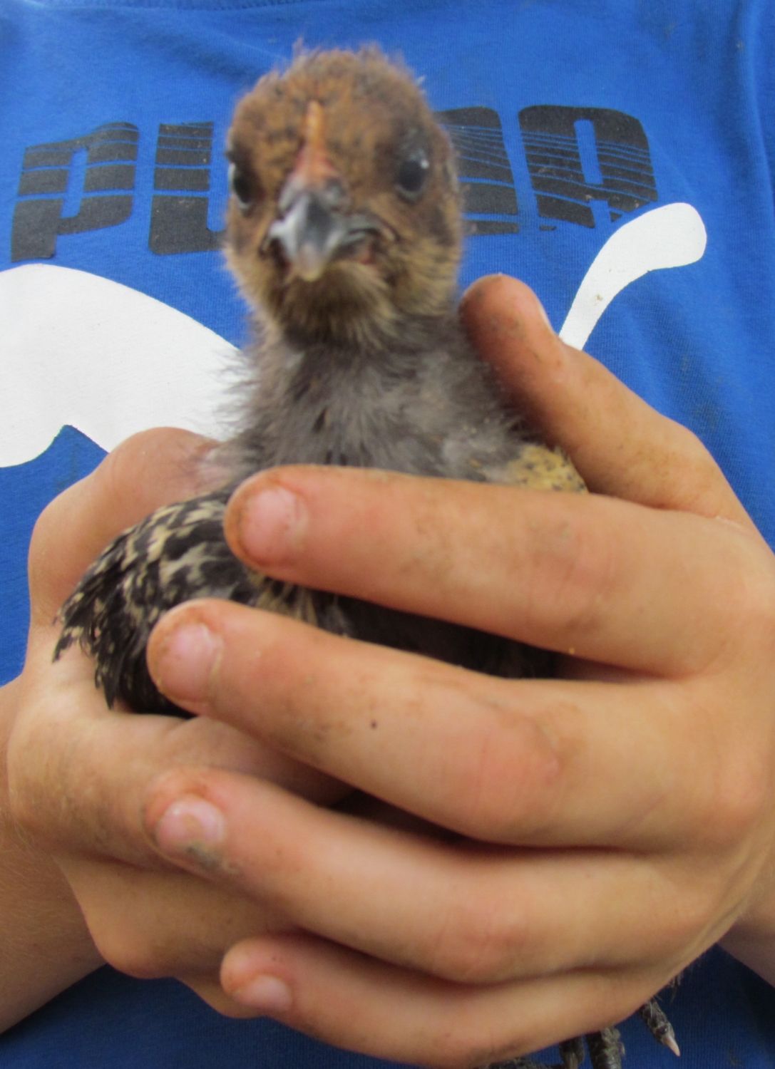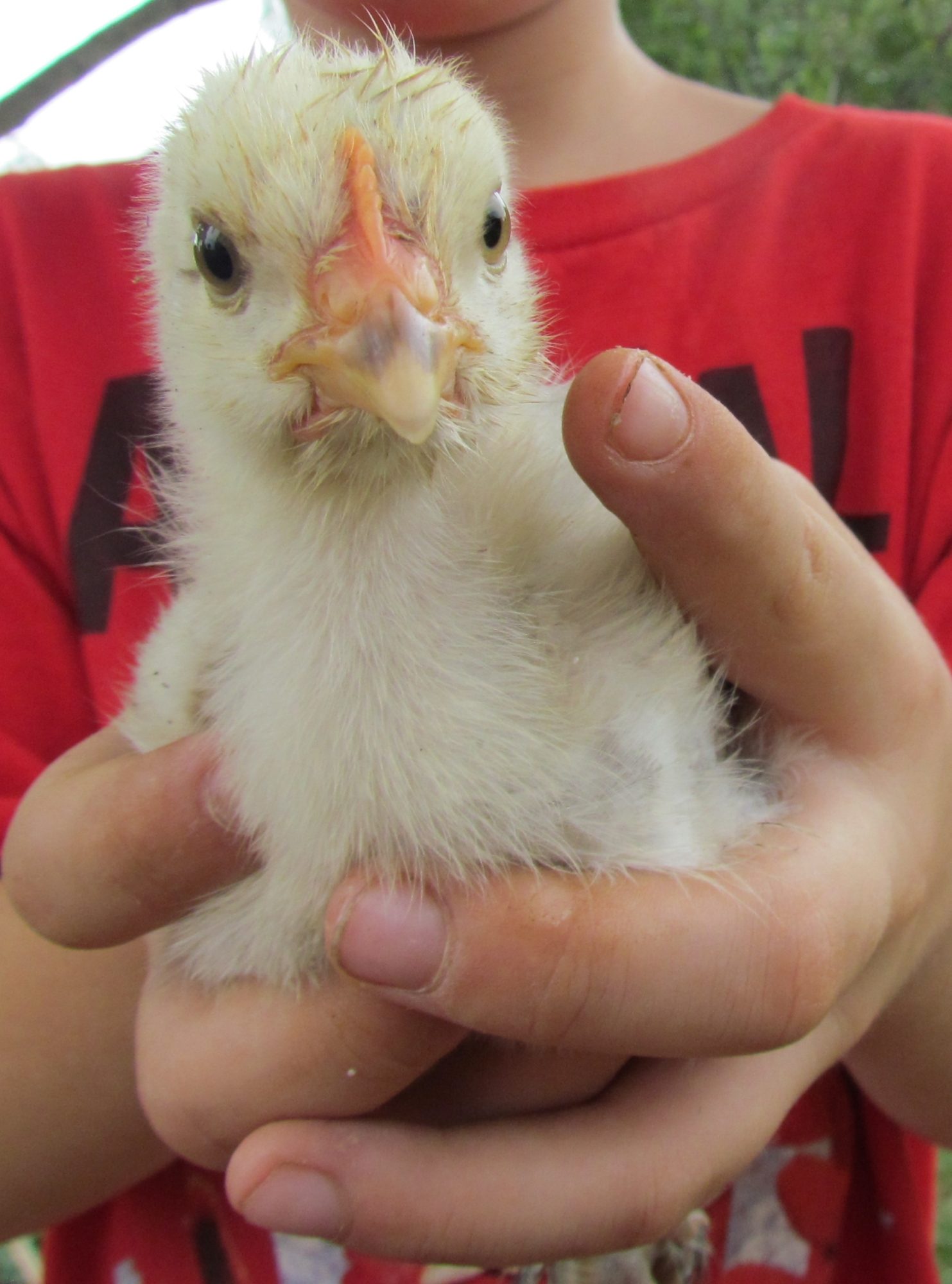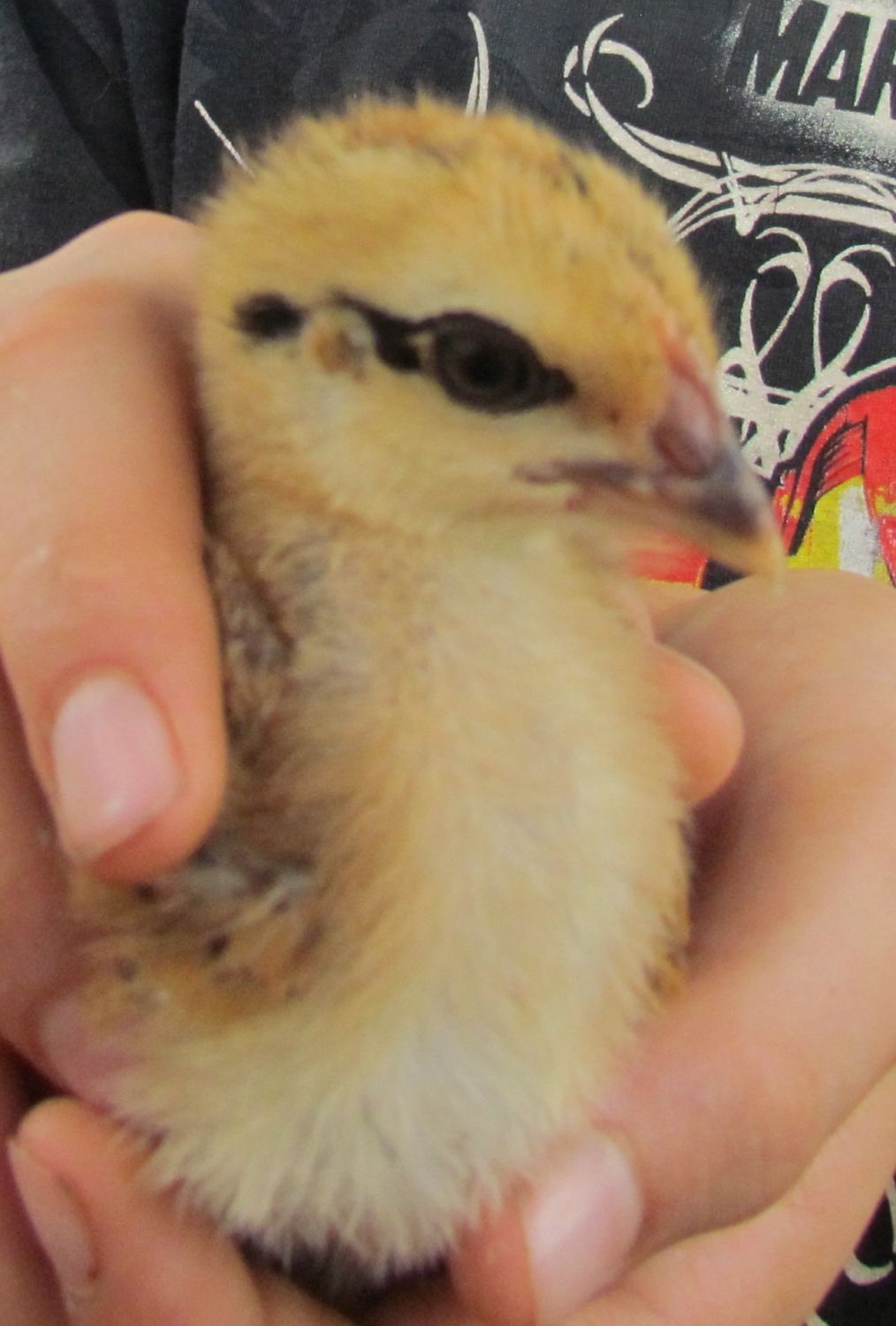 Maybe these will be better pics to compare Cinder to. Sorry about my kids dirty hands they were playing outside when I asked them to catch the chicks for pictures.Okay Cinder is 4 weeks and like 1 day old. Yours still look really young, and no wattle development. Are these the ones that hatched the same day as Cinder and my silkies?