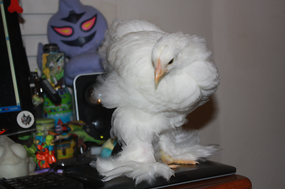 Thought I would share some photos of my cochin gal! She is 7 months old now. She was a lone chick, so she is a part of our human family indoors. She roosts on my computer chair! She needs a wee beak trim in some of these, we give her things to whet her beak on but she insists on rubbing it on soft things like blankets and pillows.