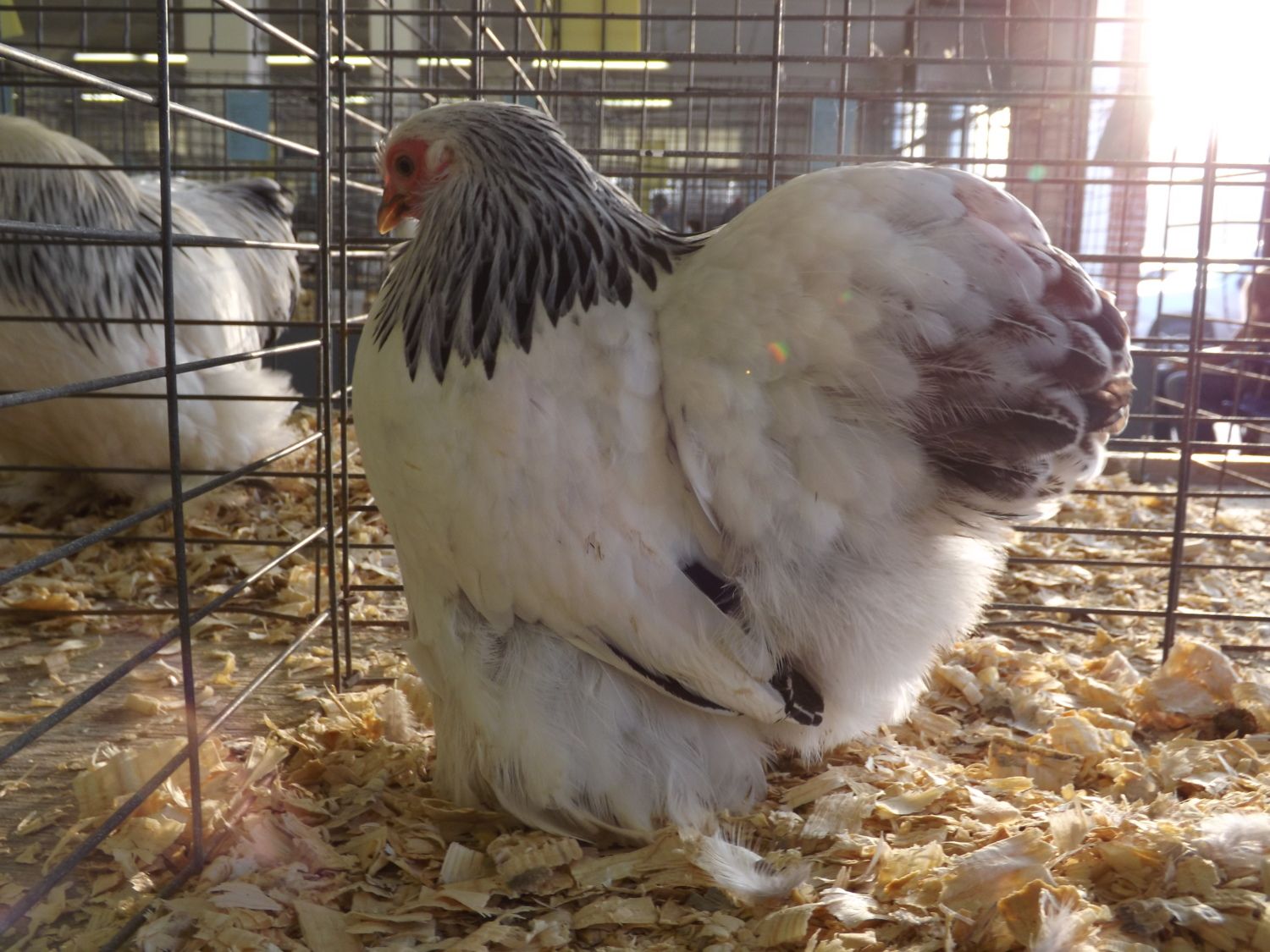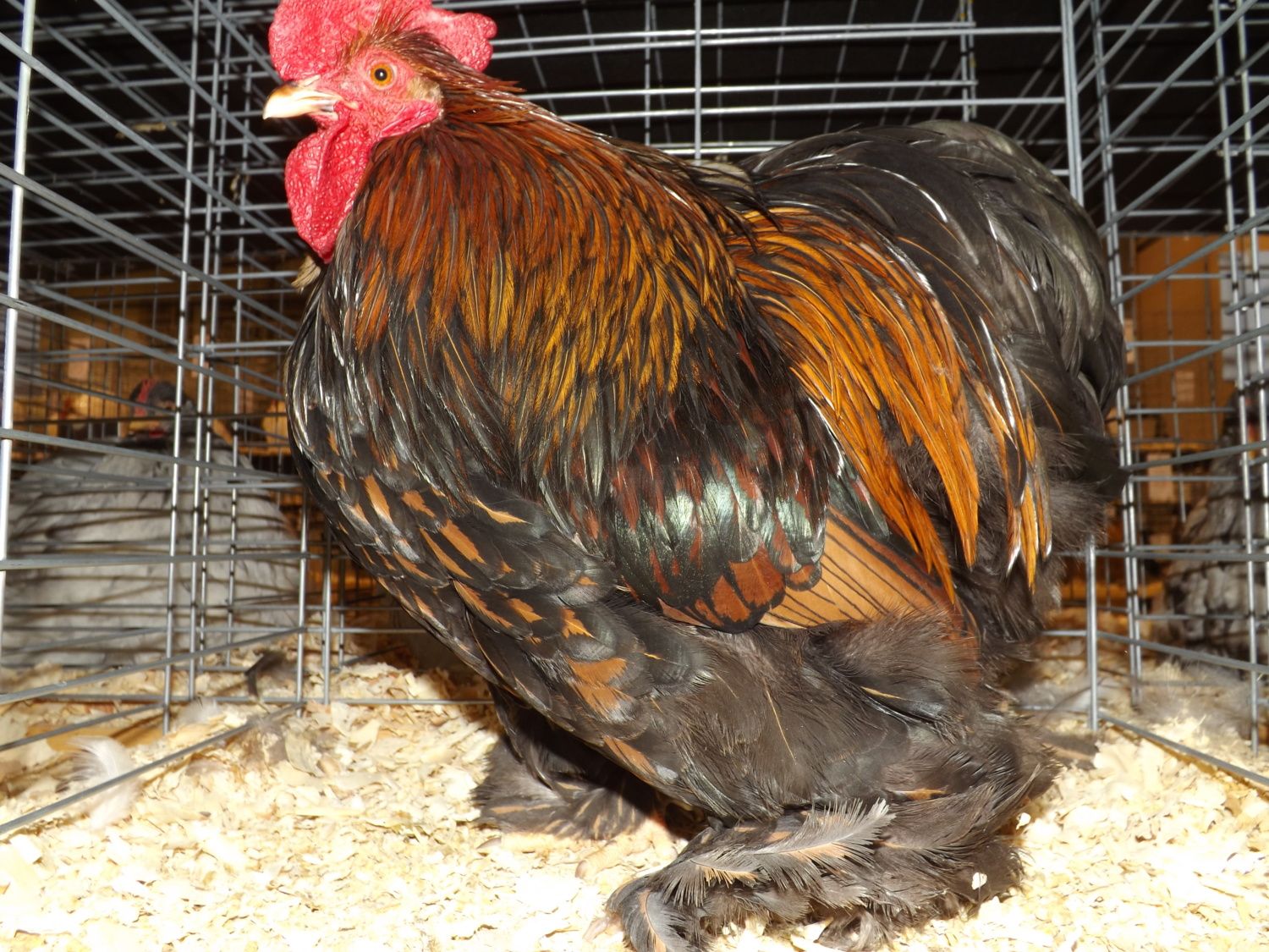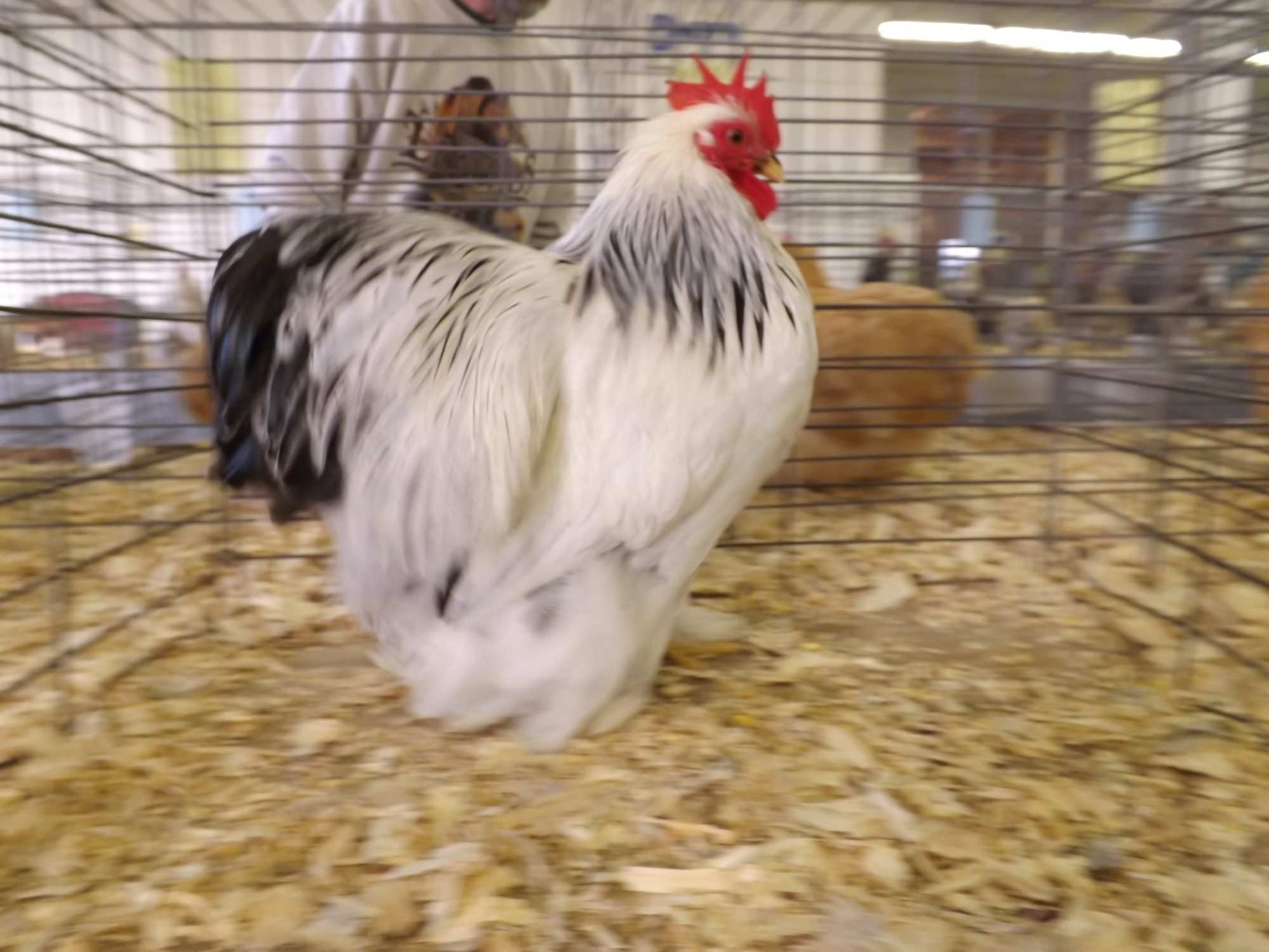 Top picture is of the main floor of the 2014 Ohio National Poultry show. 100th Anniversary of the ABA. Over 9600 birds entered and there was a 2nd building for Waterfowl, Turkeys, and Sale Birds. The Gold Laced Cockerel was Best of Variety and the Gold Laced Pullet was the Reserve of Variety. The Columbian Cockerel was Best of Variety and the Pullet was Reserve of Variety. Bantam Splash Cochins met the qualification requirements for admittance into the Bantam Standard.