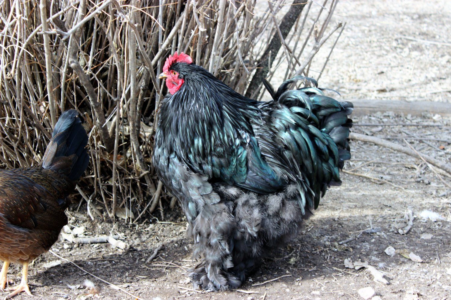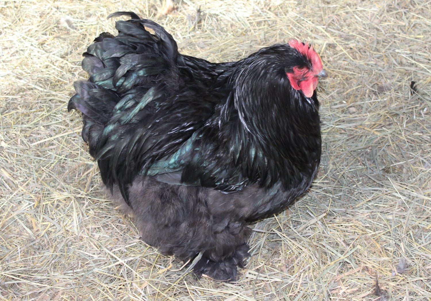 They are both the same age, the first guy is taller and the second guy is more compact. The pictures almost show a little purple coming through in the sheen, I've never seen it in person? Is purple sheen a bad thing in black cochins? And why does that bleed through? They came from an all black breeding pen. They are 8-9 months old!