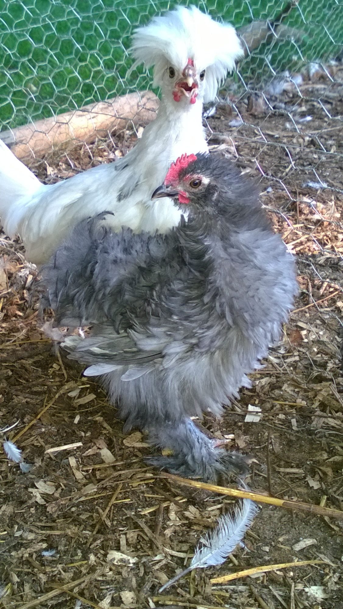 Okay now here is the question (I know it took forever for me to get to it right???) I think this is a Rooster (picture below, not the fizzle in the front. the one looking at the baby Cochins in the next pen over. opinions more than welcomed) how well does this breed fair free ranging? I have had one bantam EE free ranging (she got kicked out for father picking and being a bully) for months now and she seems to be doing just fine sheltering and feeding on her own (I say this because we have a kitten that thinks it is the greatest of fun to chase her up on to a hen house roof, coyotes, hawks and all of the other critters that live on 60 acres).
