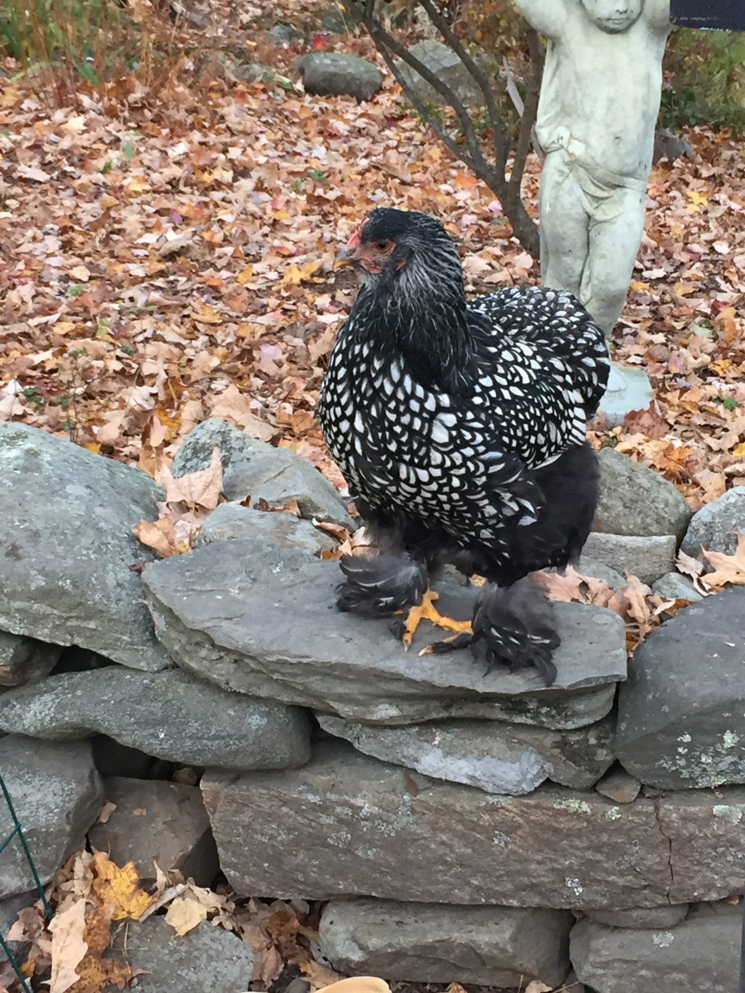 The first photo is one of the three Silver laced "pullets" I ordered last June. Don't think "she" is going to be laying any eggs in the near future, or ever for that matter. The other 2 pullets are seen in photo #2 (with the cockerel ) and photo #3. These are my first Cochins and I have only been raising chickens for a little over a year. I had not considered breeding as I was expecting 3 hens. But seeing as one is definitely going to be a rooster (hasn't crowed yet), do you think they are breeding quality? Any and all opinions will be appreciated.