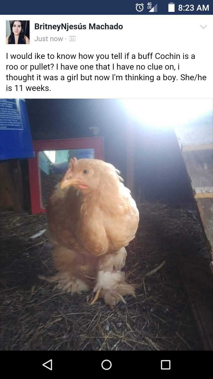 Hard to tell, I'm leaning towards roo though. Is it a large fowl or bantam?