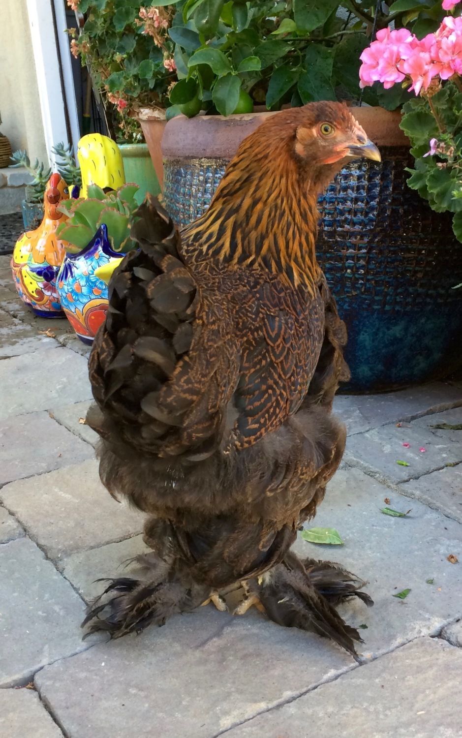 She's beautiful! What is it about Cochin's and patios?! Lol Mine hang out on my deck every day. I always say they are lounging in their "onesies"