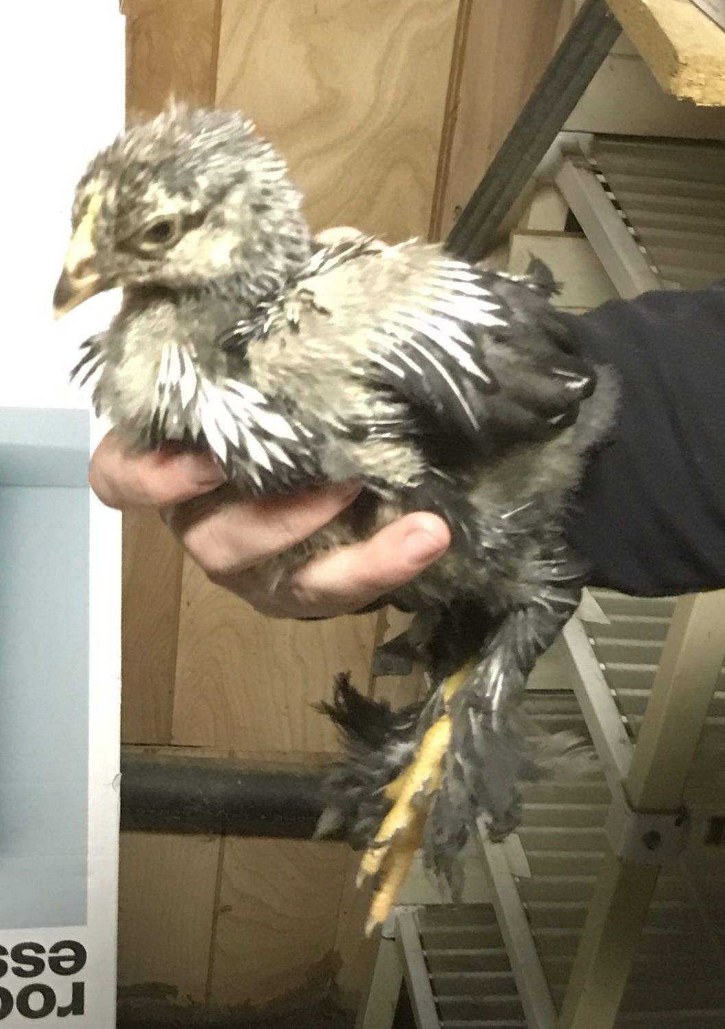Now those chicks look like my Ethel did. Maybe she isn't a Partridge Cochin after all. Silver laced huh. I'll have to look that up. Maybe with a better feather shot you guys can help me tell?