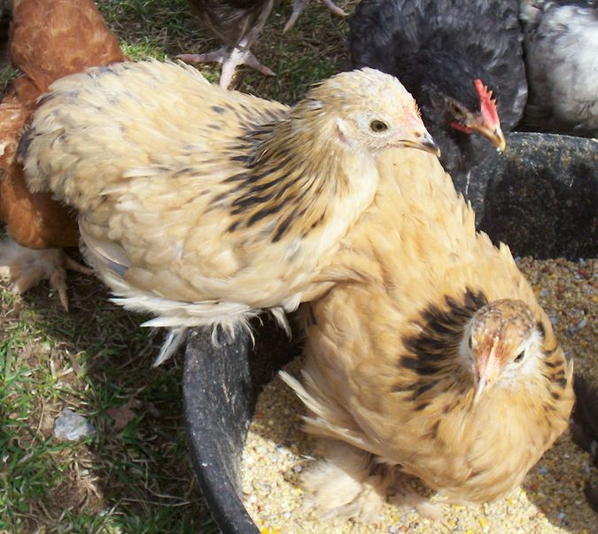 The one to the left is actually blue buff. Those tail feathers are blue, not black. The one on the right is kind of blue, too.
