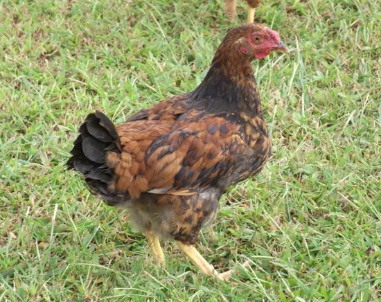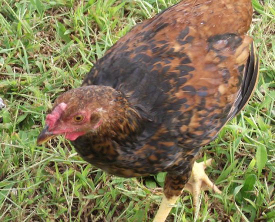 sh is a gold laced wyandotte pullet. that is a rose comb and they are a yearround egg layer. takes of 2 months for molt but will generally lay everyother day or everyday for 10 months. i love mine they are quiet and calm birds!