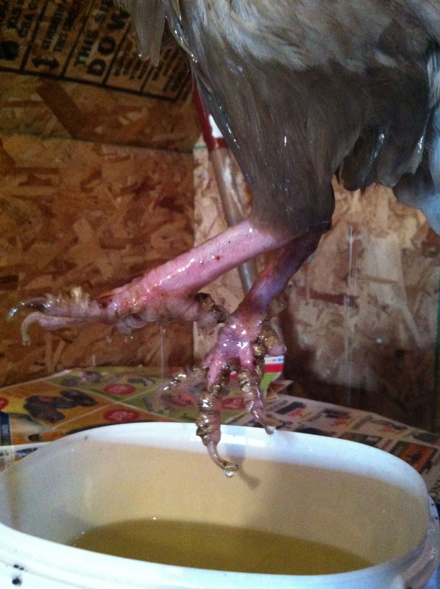 Hey everyone, Here is the update with Coco. Thanks everyone so much for your fantastic advice. Her legs, as you can see are significantly improved, and we have started treating other chickens in the coop as well just in case. We're also gutting the coop May 25th, spraying eucalyptus and scrubbing down everything.
